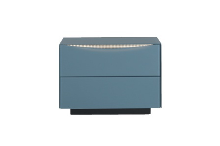 The Luna bedside table from the Italian manufacturer Reflex Angelo. The model is decorated with glamorous modern bedroom interior. The body of the nightstand is made of walnut Canaletto or wenge, lined with colored or etched glass. The model has two drawers. Base of ebony wood matte lacquer finish. There is a led backlight. Two options of sizes, colors in stock.