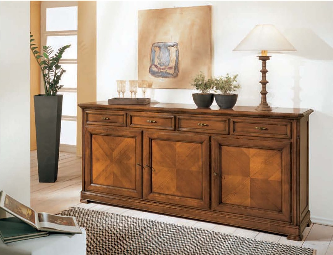 Sideboard from Italian manufacturer Mirandola Export. Sideboard in classic style. The frame is made of wood. The model has three doors and four drawers. The facade is decorated with decorative inlaid "tree". Spacious and elegant sideboard Mirandola Export will bring into Your interior elegance and comfort.