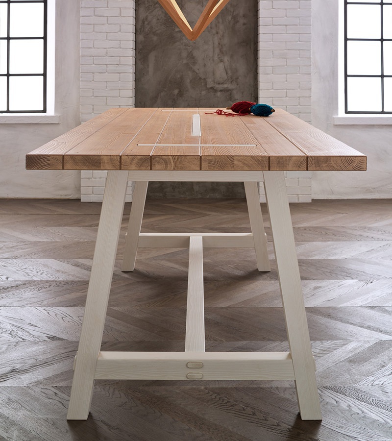 The New Fratino rectangular table in rustic style from Italian manufacturer Callesella. Made of wood with the Board surface. Color powder hemp or straw. Model napominayu about rustic idyll - gives the interior a special personality.