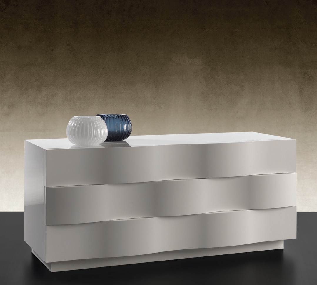 The Onda chest of drawers from Italian manufacturer Reflex Angelo. Comfortable and functional dresser has a traditional rectangular shape from designer Sasha Lakis made of solid wood in a contemporary style. The model is equipped with three drawers; available version with four drawers. Wood finishing wenge or Matt or shiny lacquer standard colors. A special feature is the wavy front, made of bent wood. Colours in stock.