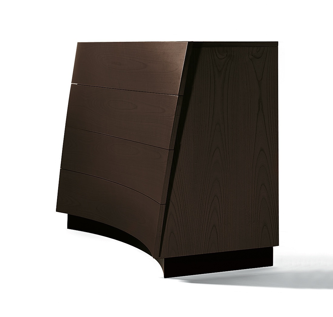 The Ventaglio chest of drawers from Italian manufacturer Reflex Angelo. A chest of drawers with a concave profile made of solid wood. The model is equipped with four drawers. Wood finishing wenge or Matt or glossy lacquer standard colors. Available models in the lining of gold or silver sheet. Colours in stock.