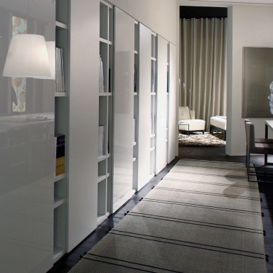 Cabinet Lane from the Italian manufacturer Meridiani. The frame is made from wood finish options: veneer / gloss varnish. Model with open and closed shelves in a modern style. Colors: white, gray, natural color of the wood.
