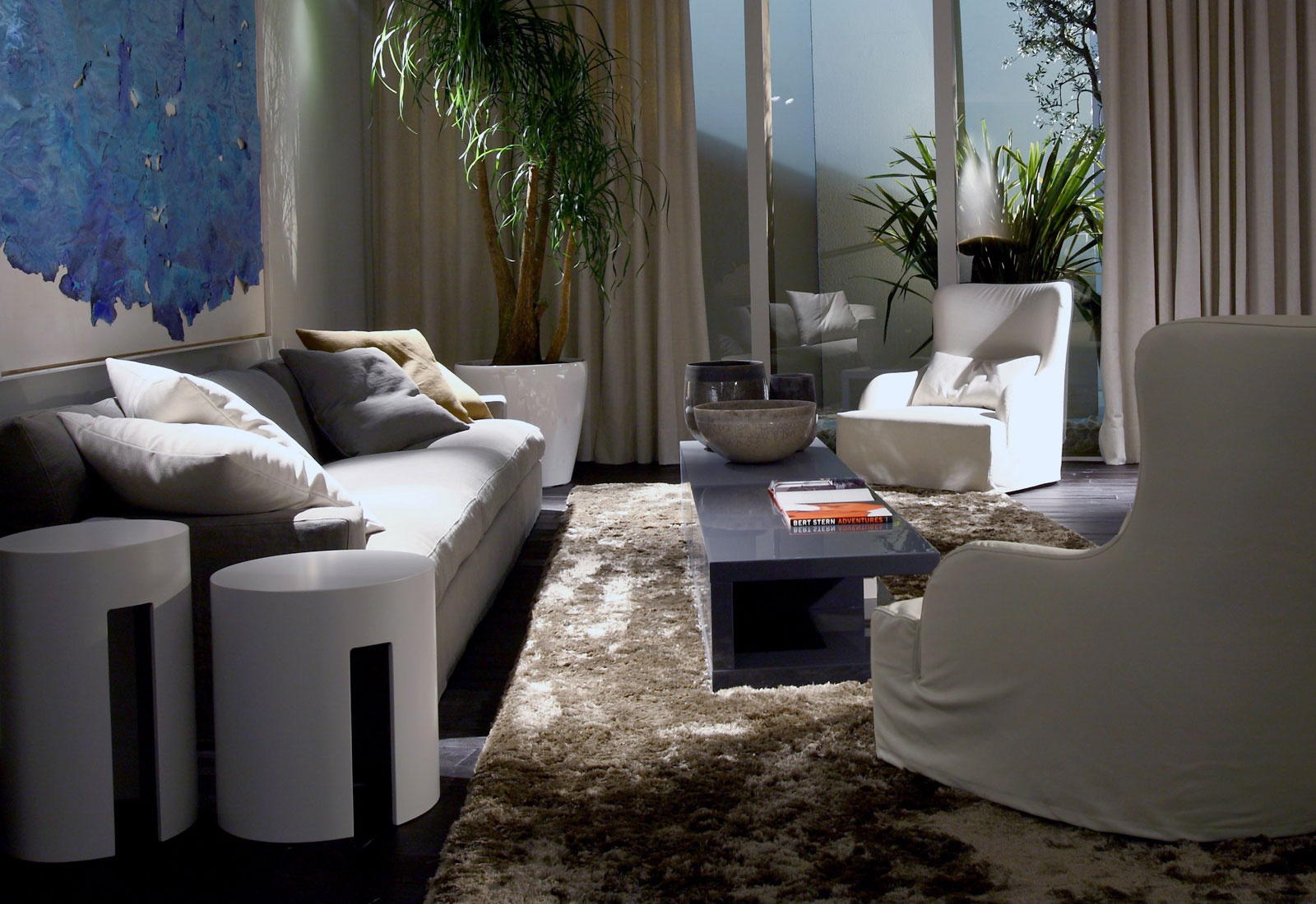 Table Gong from the Italian manufacturer Meridiani. The frame is made from solid wood, finish is offered in various versions: veneer / leather / rubber / gloss varnish. Coffee table round shape decorate living room in modern style. Colors: white, black.