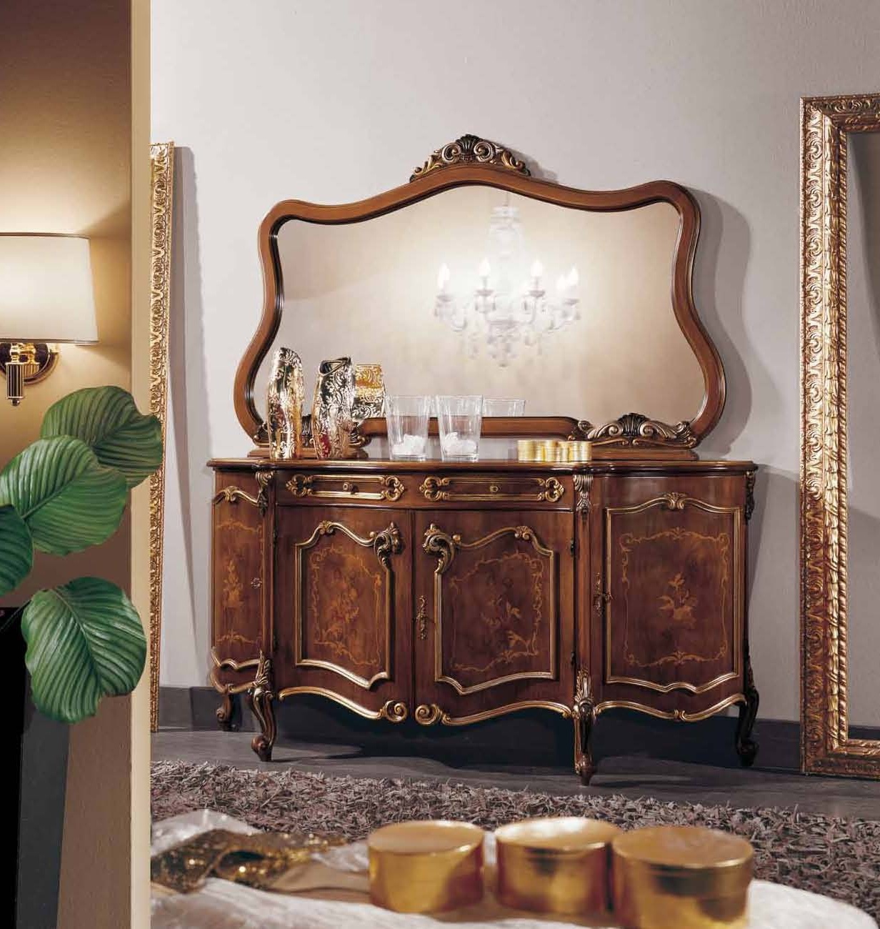 The buffet from the Italian manufacturer Mirandola Export. Great product made in the classic style. The frame is made of wood. The model has four doors and two drawers. The inlay on the facade is the ornament of the sideboard, and carved pattern lends an air of elegance and grace. Canteen Export Mirandola is a great choice for Your dining room or living room.
