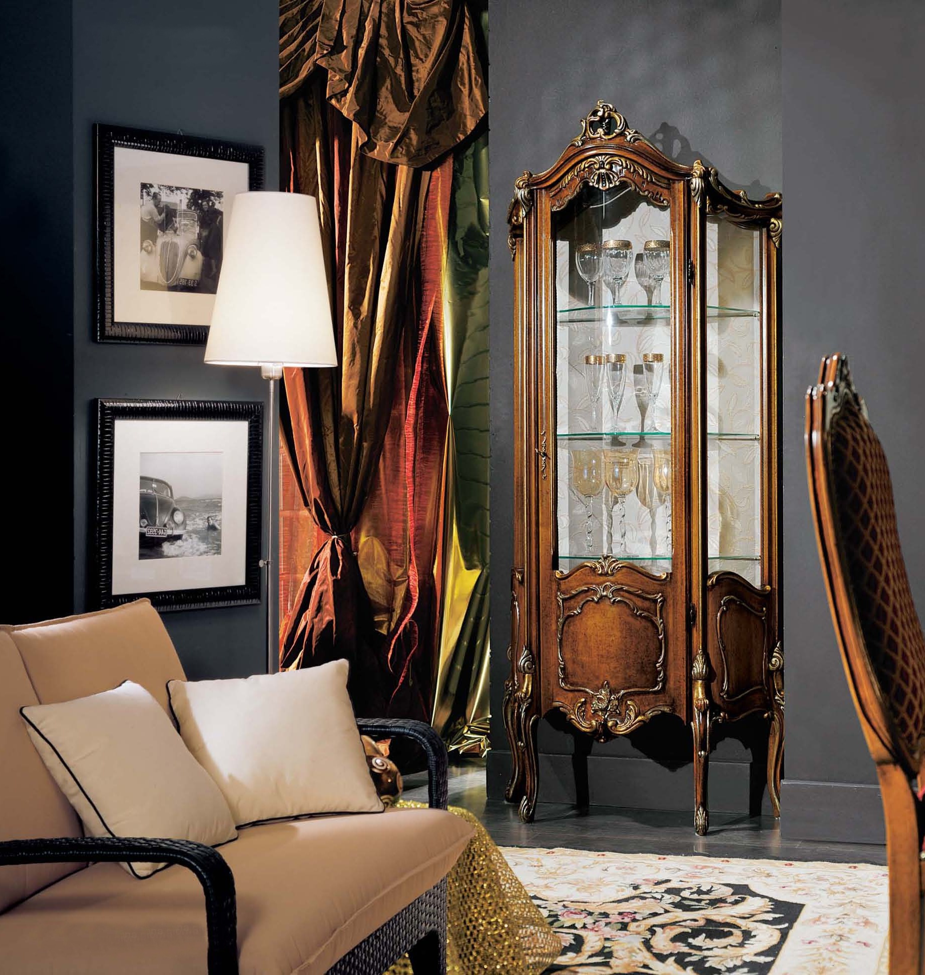 Showcase from Italian manufacturer Mirandola Export. The model is made in classic style. The frame is made of wood. The product has one door and glass shelves inside. Decorative carved pattern and graceful legs make the model exquisite piece of furniture. Showcase Mirandola Export will decorate any interior.