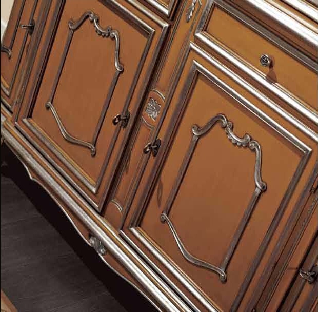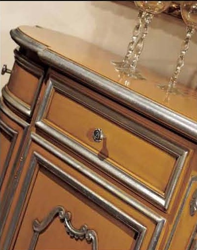 The buffet from the Italian manufacturer Mirandola Export. The snack bar has a semicircular shape and is equipped with four doors and four drawers. The frame is made of wood. A style classic. Beautiful spacious sideboard Mirandola Export easily complement any interior.