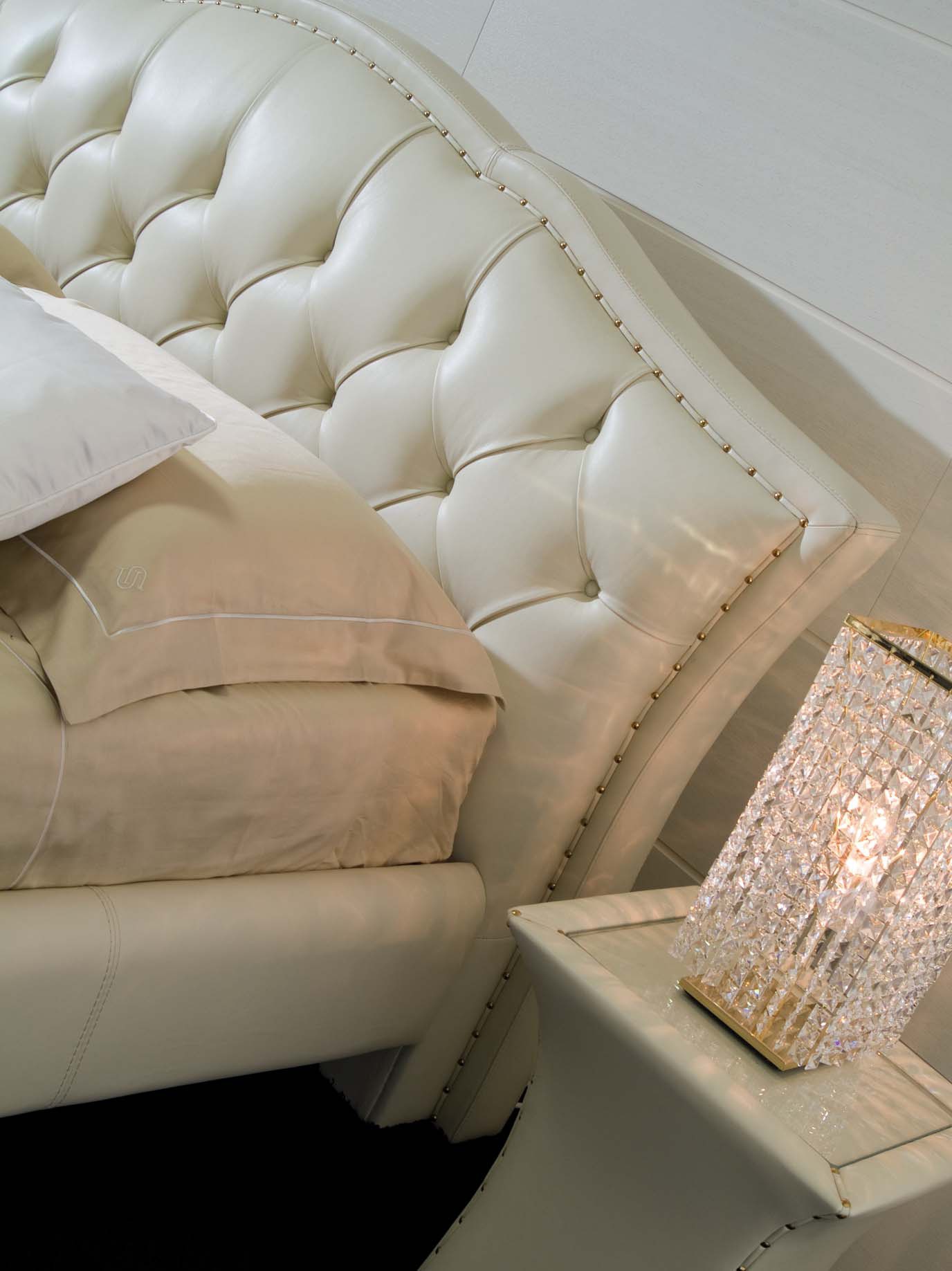 Set for bedroom Illusion from the Italian manufacturer Tosconova. The set includes a double bed with high upholstered headboard and bedside bench with storage compartment, bedside table. The skin acts as upholstery, you can choose from the range, as a filler - polyurethane foam of different densities. Offers a wide range of textures, colors, sizes. Ornament stands stitch-Capito and fine openwork legs in gilt. Style classic.