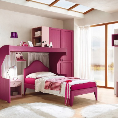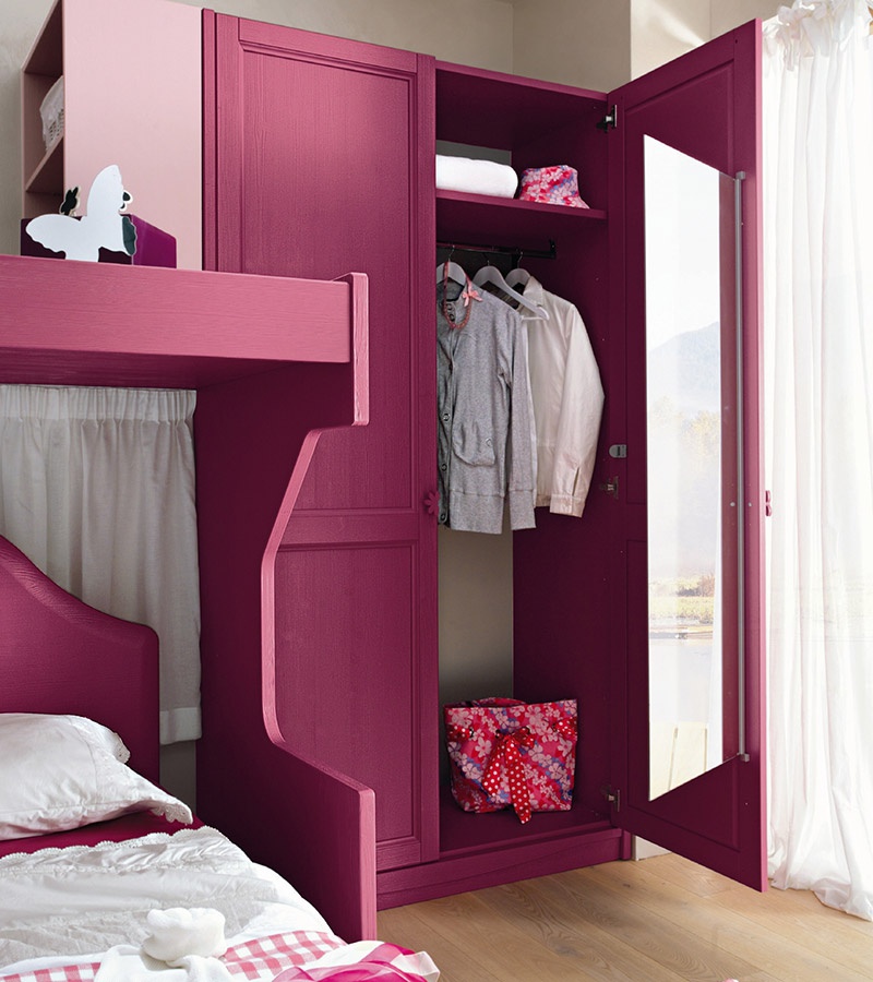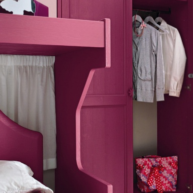 A set for the bedroom with single bed GENDARME with a high in class from the Italian manufacturer Callesella. Set with bed, bedside table, wardrobe, shelves, Desk, bench and shelves. Set is made of wood and MDF with a Matt finish. Single bed with headboard. Bedside table with drawer. Wardrobe two-piece with necessary fittings.
