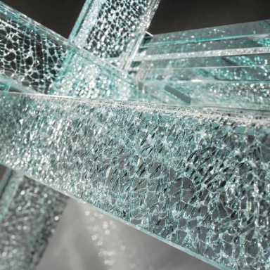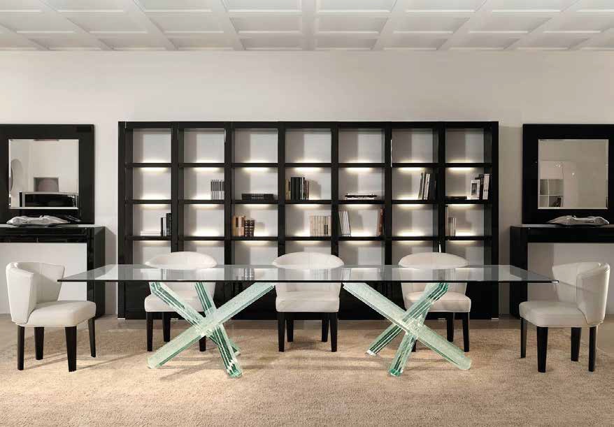 The Transeo 72 dining table from Italian manufacturer Reflex Angelo. Exquisite elegant model from the designer Tulczinsky, in the style of glamour, filled with light and air dining room or living room. The table is made entirely of glass. Rectangular or round table top is made of extra-clear glass 15 mm thick with beveled edges. Grounds are three or four feet in the form of bars, made of glass in the craquel? finish or extra-clear craquel?. Legs edged with plates of shiny chromed metal. Colors to choose in stock.