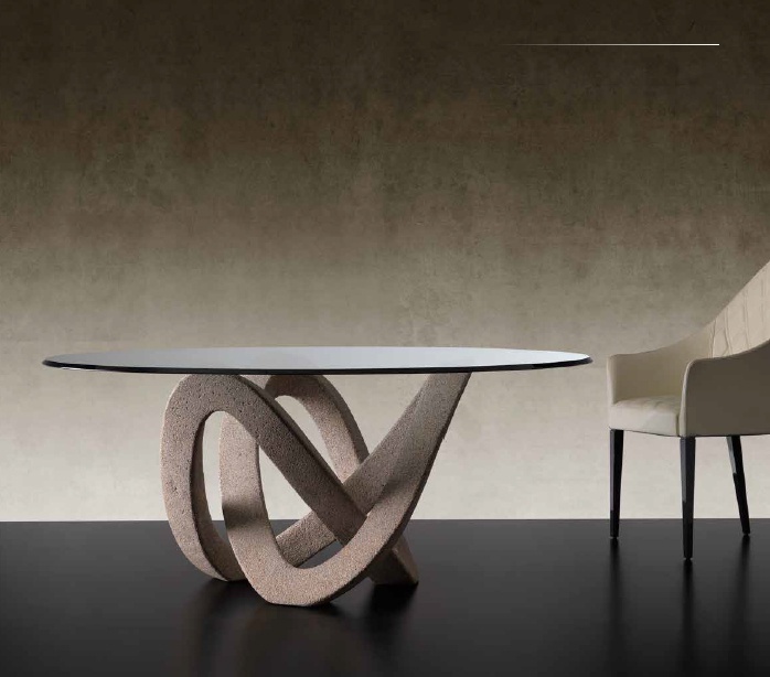Dining table with carved base 72 Andromeda granite, Reflex Angelo
