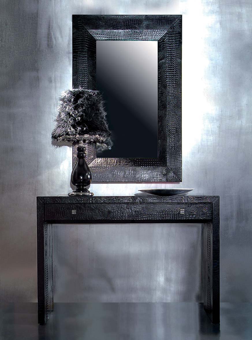 Mirror SP40 from the Italian manufacturer Tosconova. The mirror in rectangular frame made from solid wood. The frame is in the finishing of leather by catalog. A wide range of colors, shades, textures. A stylish choice for interior decoration.