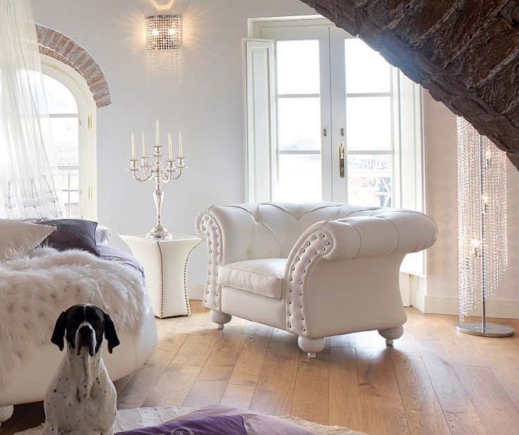 Chair David from the Italian manufacturer Tosconova. Model semi-circular, wooden frame, with round legs. Upholstery leather is out of range. Filler - polyurethane foam. The decor is a stitch-Capito. To choose from - a rich palette of colors, shades, textures. A refined solution to classical interior design. The chair will be perfectly set from the same collection.