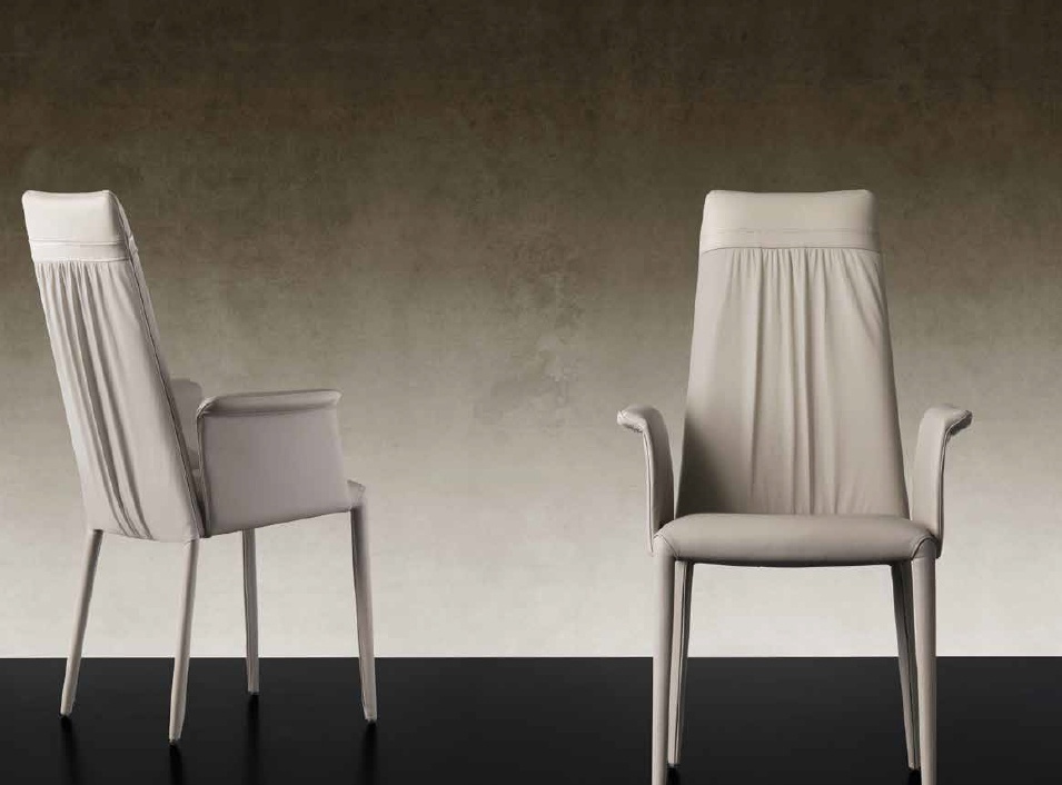 The Camilla chair from the Italian manufacturer Reflex Angelo. The original model of the chair is designed in modern style, fits into any traditional or modern interior. The metallic structure of the chair fully, including the legs, hidden under the leather upholstery. The model is available with a small bent armrests or without them. Back front and back decorated with beautiful pleated folds. The chair can be used in almost any room. Colors to choose from a collection company.