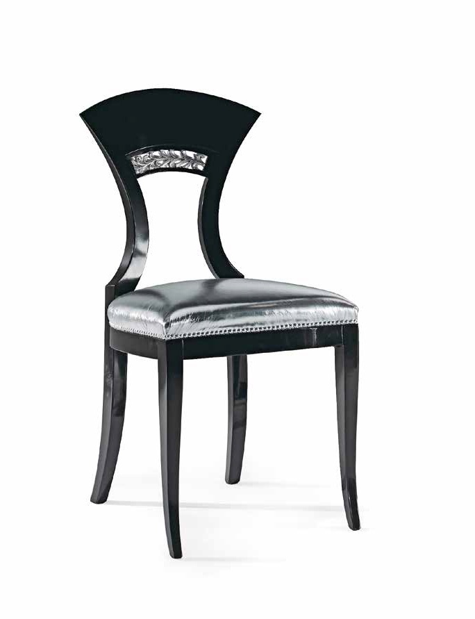 Giada chair from the Italian manufacturer Reflex Angelo. An elegant model made by designer Tulczinsky in the Biedermeier style, will transform the interior of the living room or dining room. Frame, backrest and legs are made from solid wood cherry or walnut with follow-up wax treatment. Also available model, is made of black lacquered wood. Figure the back is adorned with hand carvings and inlay. Models are available with inlays, covered with gold or silver foil. Seat in the textile, velvet or leather upholstery. Colors to choose from a collection company.