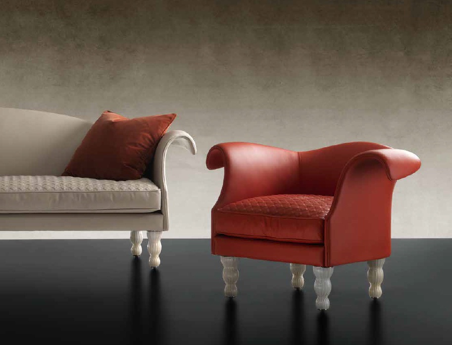 frame: wood legs: glass legs: Murano glass upholstery: leather upholstery: velvet |