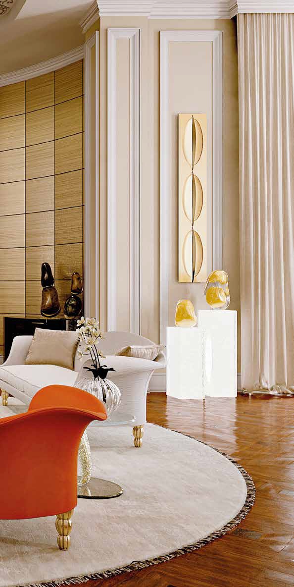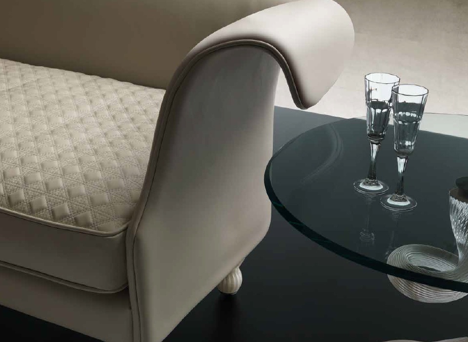 Sofa set of four items from Casanova Italian manufacturer of Reflex Angelo. Luxury model from designer Marco Cocco, combining elegance with the finish of expensive materials, will realize all Your wishes regarding the design of the living room of Your dreams. Set consists of sofa, two low Bergere chairs and couches. Available two-, three - and four-seater model of sofa. The frames are made of wood, shaped legs made from transparent or Murano glass. Murano glass in a Golden finish or color to match the leather upholstery. The combined upholstery - backrest and armrests in leather, seat embossed velvet in San Marco. Armrests and shaped backrest folded like petals. The color spectrum is based on the play of contrasting colours, but there may be solid options in the catalog of the manufacturer.