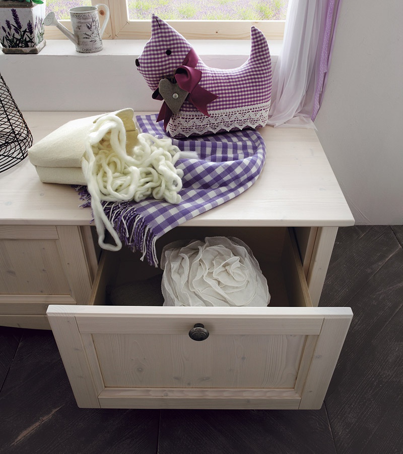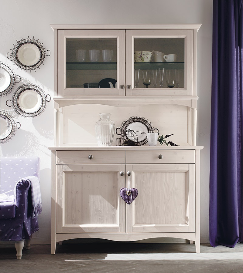 Sofa set Cotone from the Italian manufacturer Callesella. A wide range of cabinets with open and closed shelves of cabinets, drawers, cupboard for dishes with glass doors and sofa for relaxation. The furniture in country style strikes ideal balance between love of tradition, functionality and practicality. They are created to blend in in every corner of our house. A simple and elegant way to furnish a living room with high quality garden furniture with no loss of functionality.