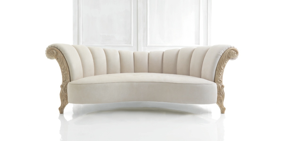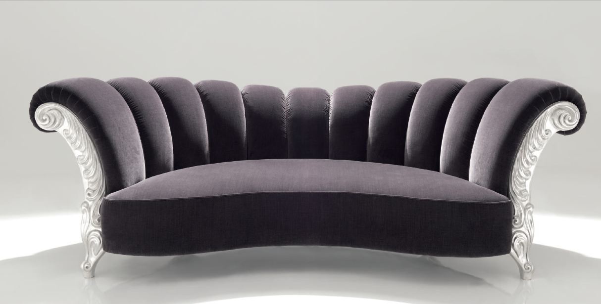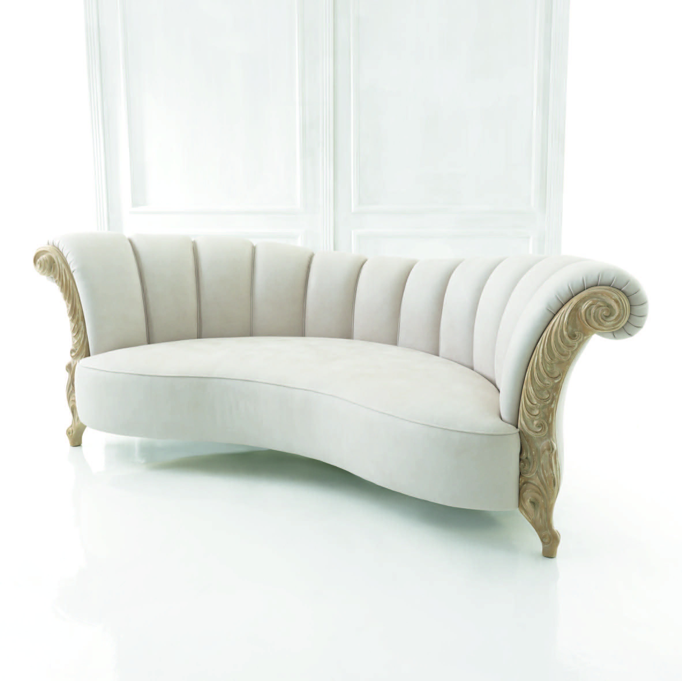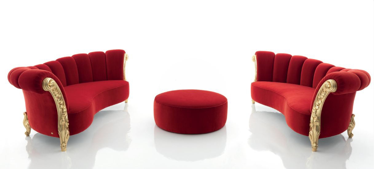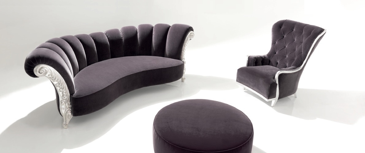 Vogue living room set from the Italian manufacturer Tosconova. The set includes a triple semi-circular sofa and round Ottoman-table. Frame products made from solid wood. As upholstery textiles used in the catalog, the filler - polyurethane foam of different densities. The visible part of the frame decorated with rich carvings in gold leaf. A rich selection of textures, colors, sizes, makes it possible to choose products best suited to Your style, personality and d?cor. The range also includes sofas 4 and 5 seater, armchair, couch.