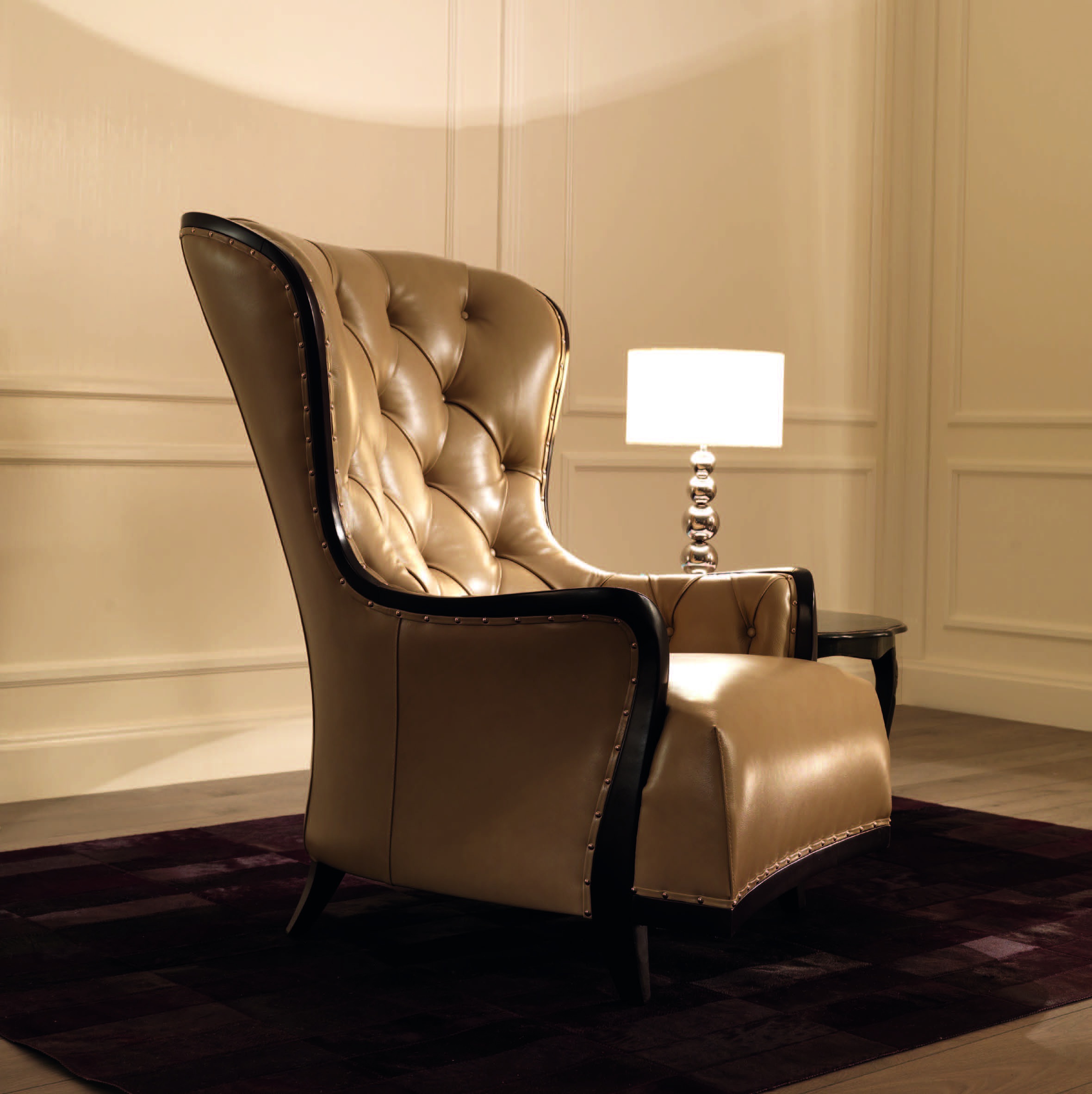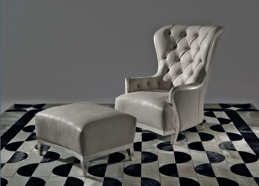 Chair with Ottoman Krudelya from the Italian manufacturer Tosconova. The frame is made from solid wood. For upholstery, leather/ textiles from the range, the filler - polyurethane foam of different densities. The visible part of the frame is covered with varnish from the range. The decor is a stitch-Capito. A rich selection of textures, colors, sizes, makes it possible to choose products best suited to Your style, personality and d?cor. The range also includes sofas, armchairs and poufs. The classic design with hints of glamour.