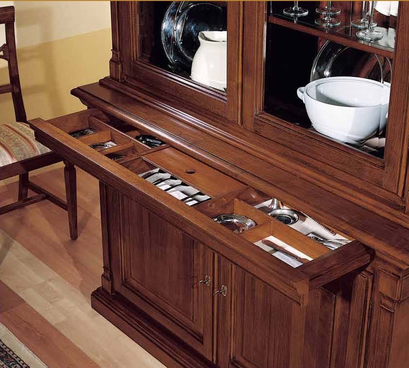 Sideboard from Italian manufacturer Mirandola Export. Classic sideboard made of wood. The model has two wooden and two glass doors. Inside glass shelves. For convenience, the product is equipped with a drawer for Cutlery. Elegant sideboard Mirandola Export will add convenience into Your dining room.