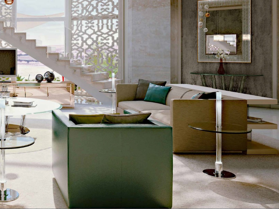 Lucciola coffee table from the Italian manufacturer Reflex Angelo. The original round table, with two functions - a stand and lamp will perfectly complement traditional or modern interior living room. Top made of transparent glass thickness of 10 mm with a conical chamfer. Round base with glass finished in mirror polished. Matt Central rod in Murano glass in hand finishing, equipped with led lighting system, elevated above the top and serves as a light source. Colors - transparent, mirror, Matt.