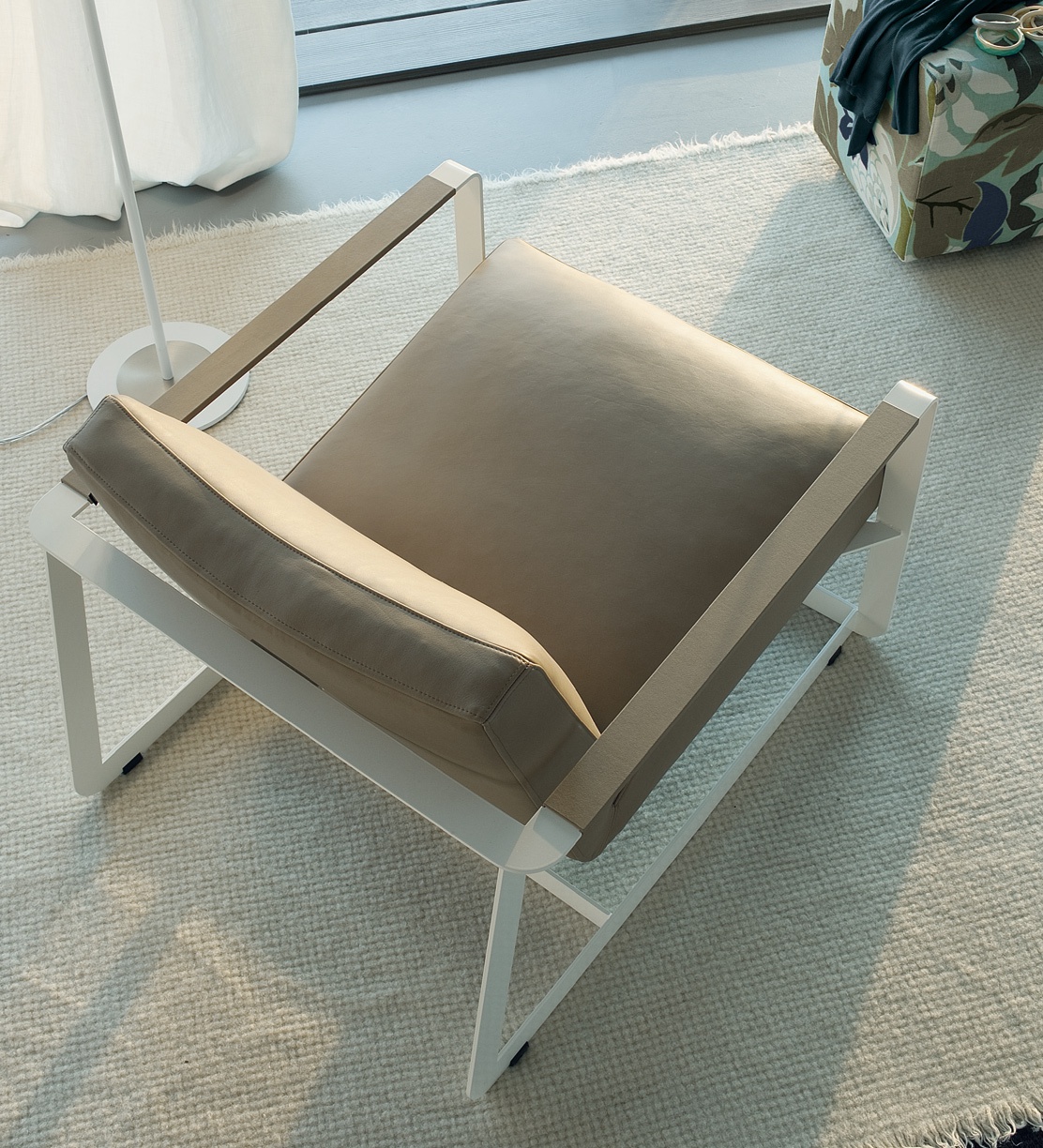 The Gaston armchair from Italian manufacturer Poliferm. Chair on a metal frame in white, black, coffee lacquer. Filler cushions of the seat and backrest polyurethane foam of different hardness and pen. The technical case is made of cotton fabric. The armrests are covered with skin in version with fabric upholstery leather armrests made in the color of the frame. Upholstery removable fabric or fixed leather. The colors in the catalog of the manufacturer.