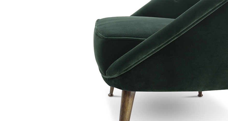 Chair legs made of brass MALAYA from Portuguese manufacturer Brabbu. The frame is made of wood. Legs made of brass. Velvet upholstery filled with polyurethane foam. The model is able to listen to the whisper of history of various cultures such as Indonesia, Philippines and Singapore. It is ethnic to give life to Malay - a graceful green velvet armchair with a mystical soul. Will fill the living energy from nature. Enjoy this comfortable chair in velvet with legs made of cast brass.