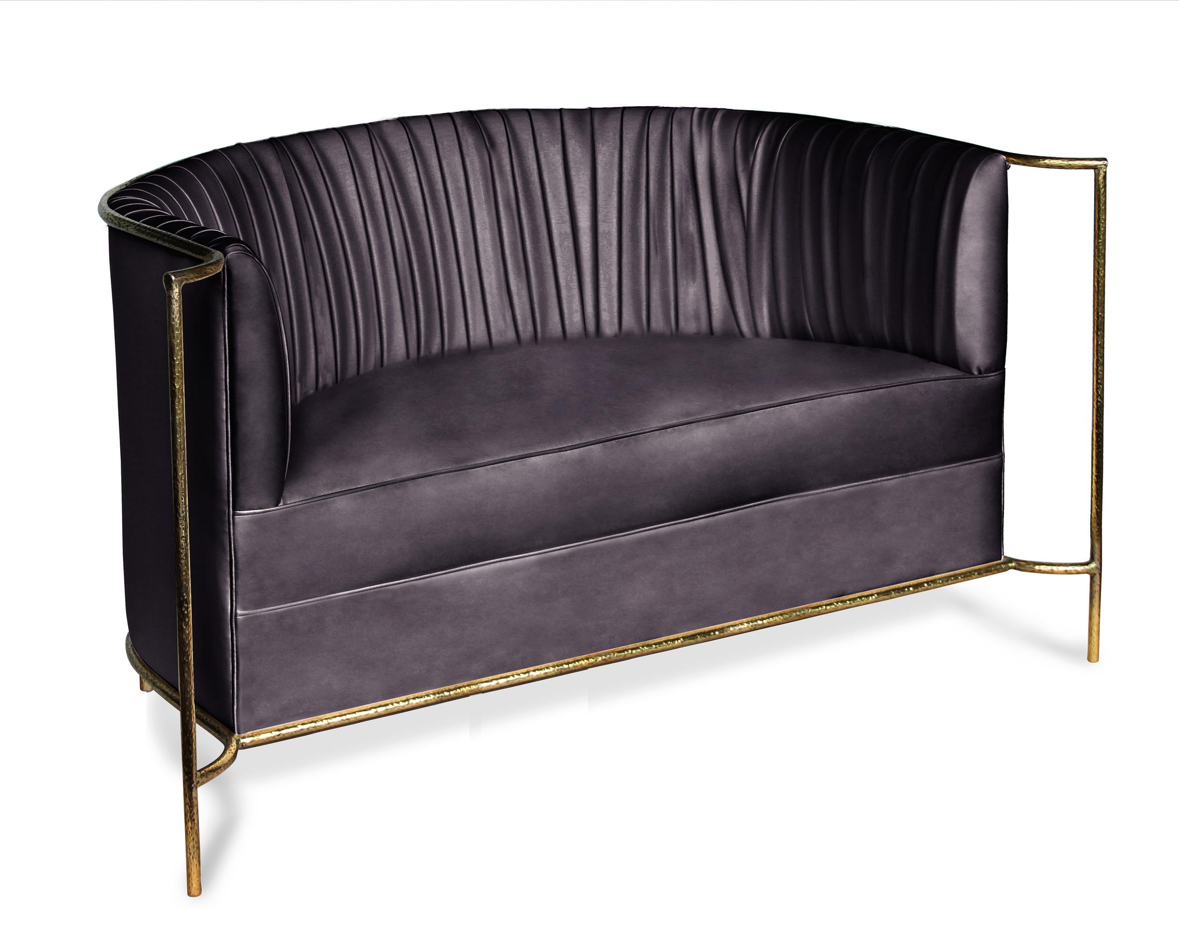 Sofa Desire from Portuguese manufacturer Koket. The photo shows the model on a matte gold plated frame with a satin trim. The sofa will perfectly complement Your interior, creating a unique sensual way. Upholstered in a choice of the catalog of the manufacturer.