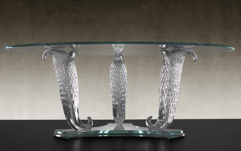 countertop: glass base: mirror glass base: sfumato (smoky) legs: Murano glass legs: crystal legs: handmade |