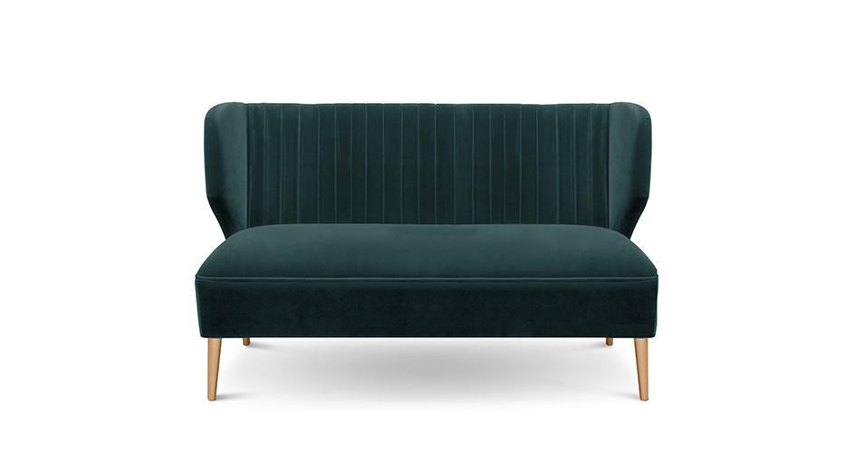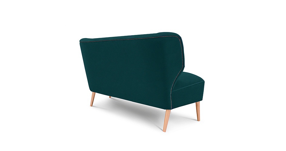 BAKAIRI two seater sofa from Brabbu Portuguese manufacturer. The frame is made of wood. Legs with glossy coating. Upholstery textiles with a filler of polyurethane foam. Decor furniture are shiny cloves. Inspired by the BAKAIRI tribe legend that says that the tribe was created by the gods Keri and Kame. Together they adapted the world for human beings. The model aims to change views on life in modern living, giving more comfort through touch.