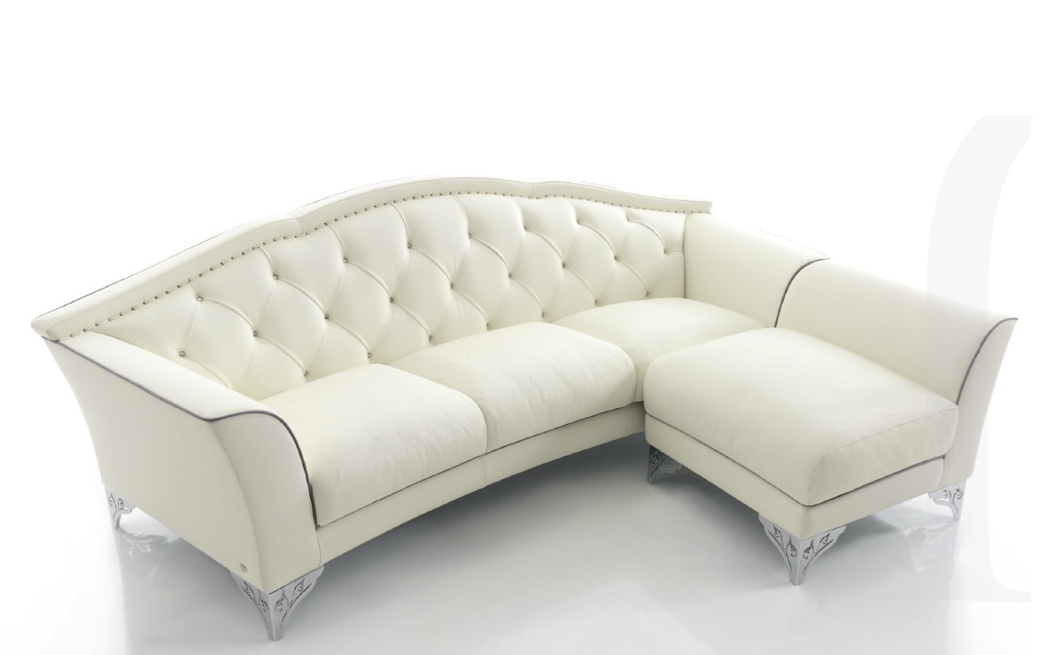 The four-seater sofa with pouf Illusion from the Italian manufacturer Tosconova. Frame, base made from solid wood. The trim acts as the skin in the catalog. Filler - polyurethane foam of different densities. The legs are made of chromed steel, openwork. The decor is a stitch-Capito. The range of textures, finishes, shades are quite varied. Stool with backrest, plays a role the continuation of the sofa, transforming it into an angular model. Perfect choice for a stylish interior.