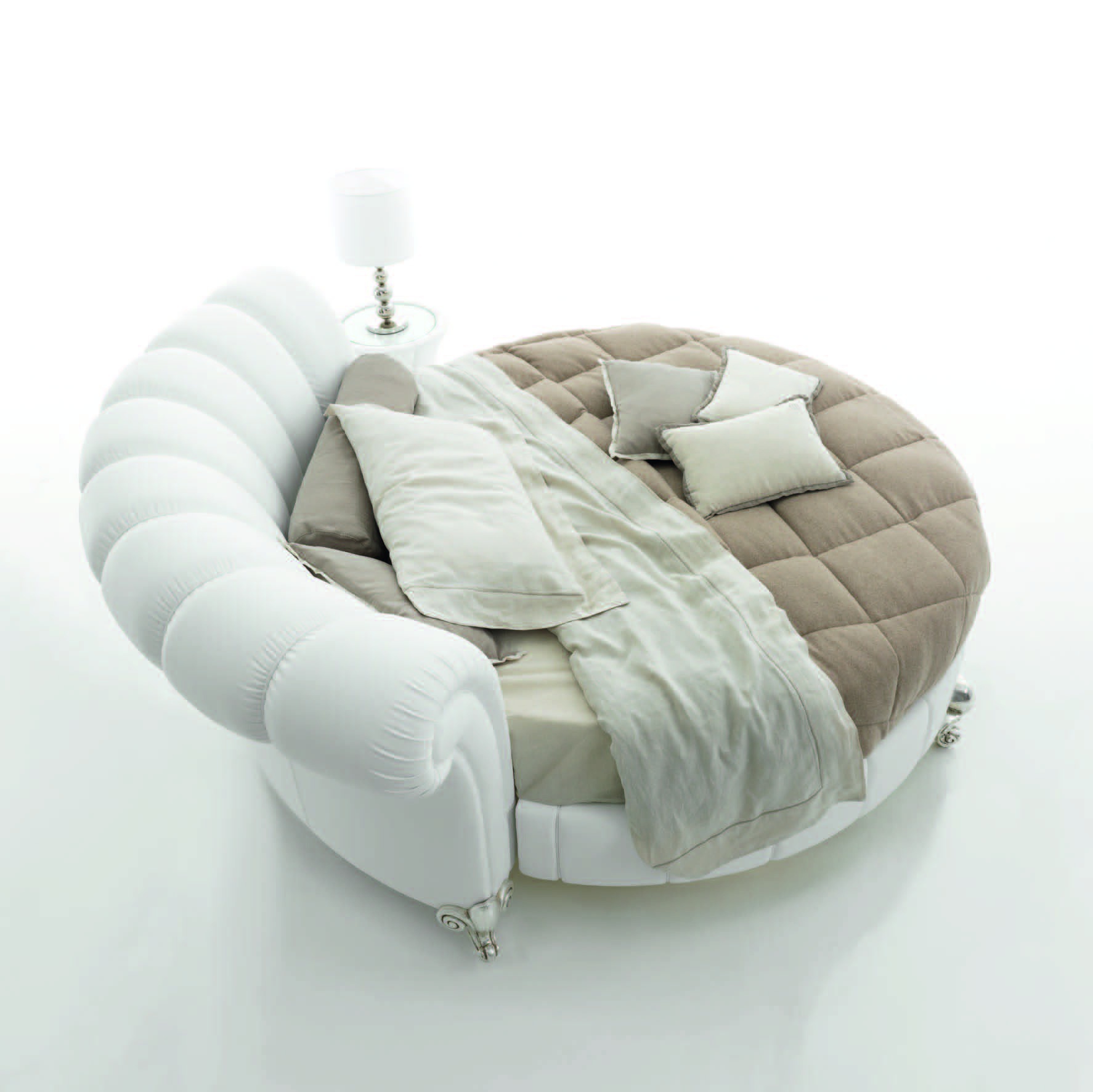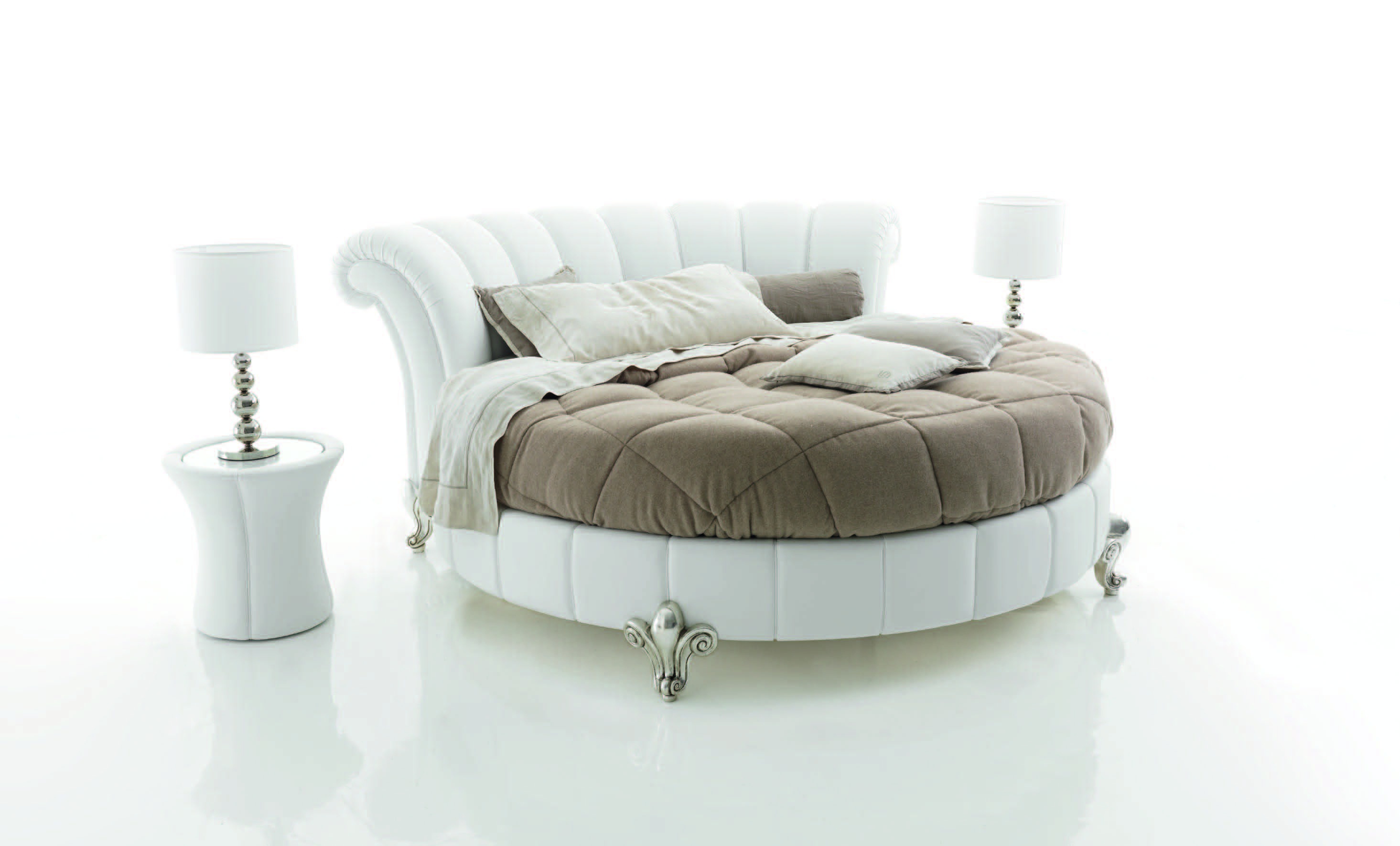Round bed on carved legs in the silver Panther Baby, Tosconova