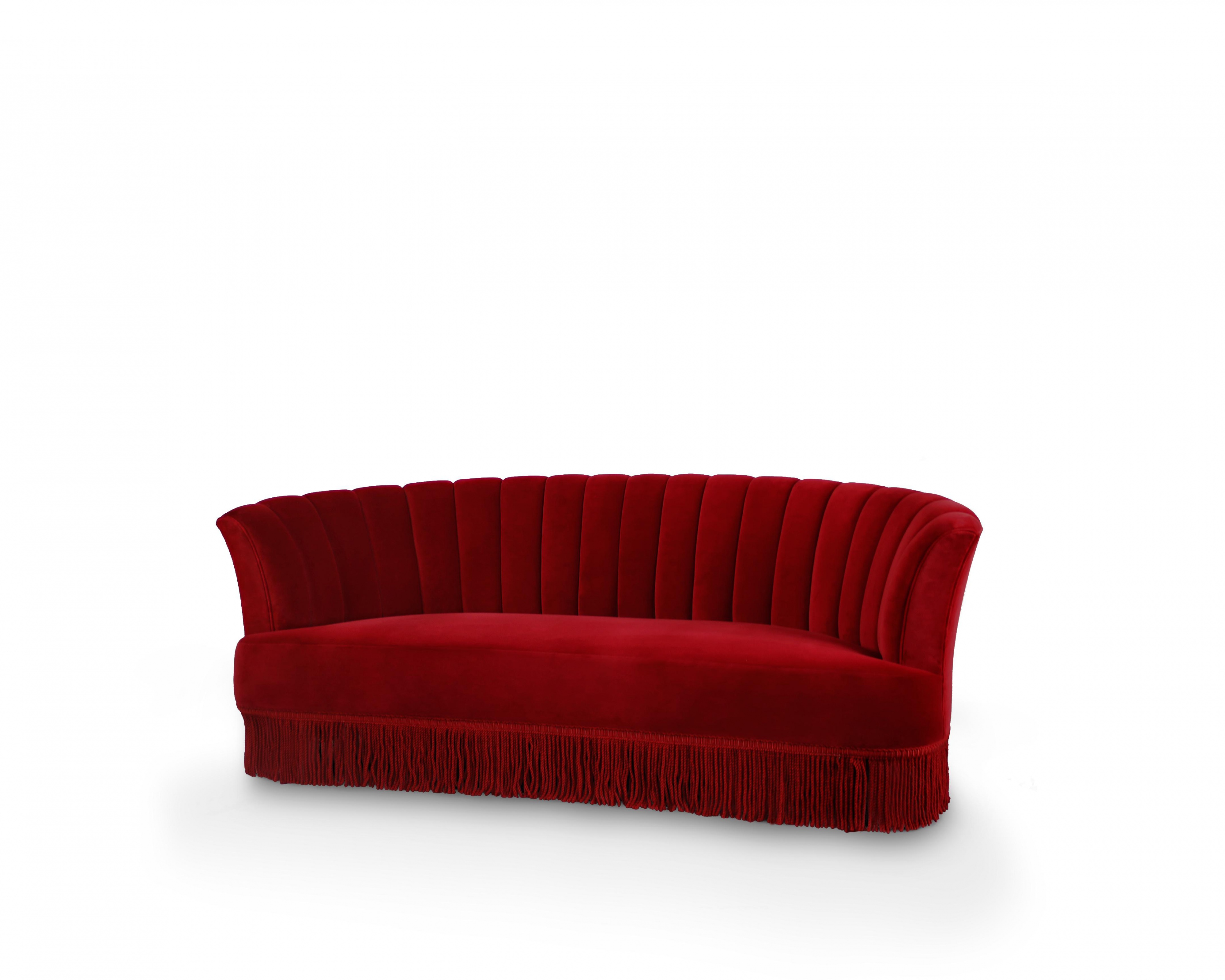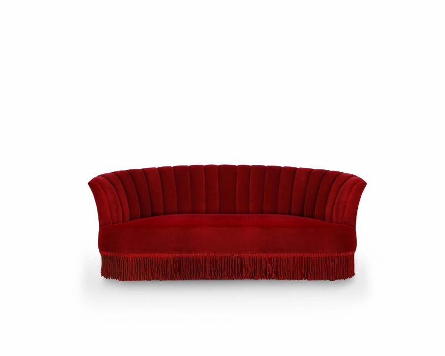 The Sevilliana sofa from Portuguese manufacturer Koket. Model with velvet upholstery and fringe. Its lines reminiscent of the Spanish girls dancing incendiary sevilliano and fringe - Spanish folk costume. On customer request it is possible to replace the upholstery fabric on the catalog factory.
