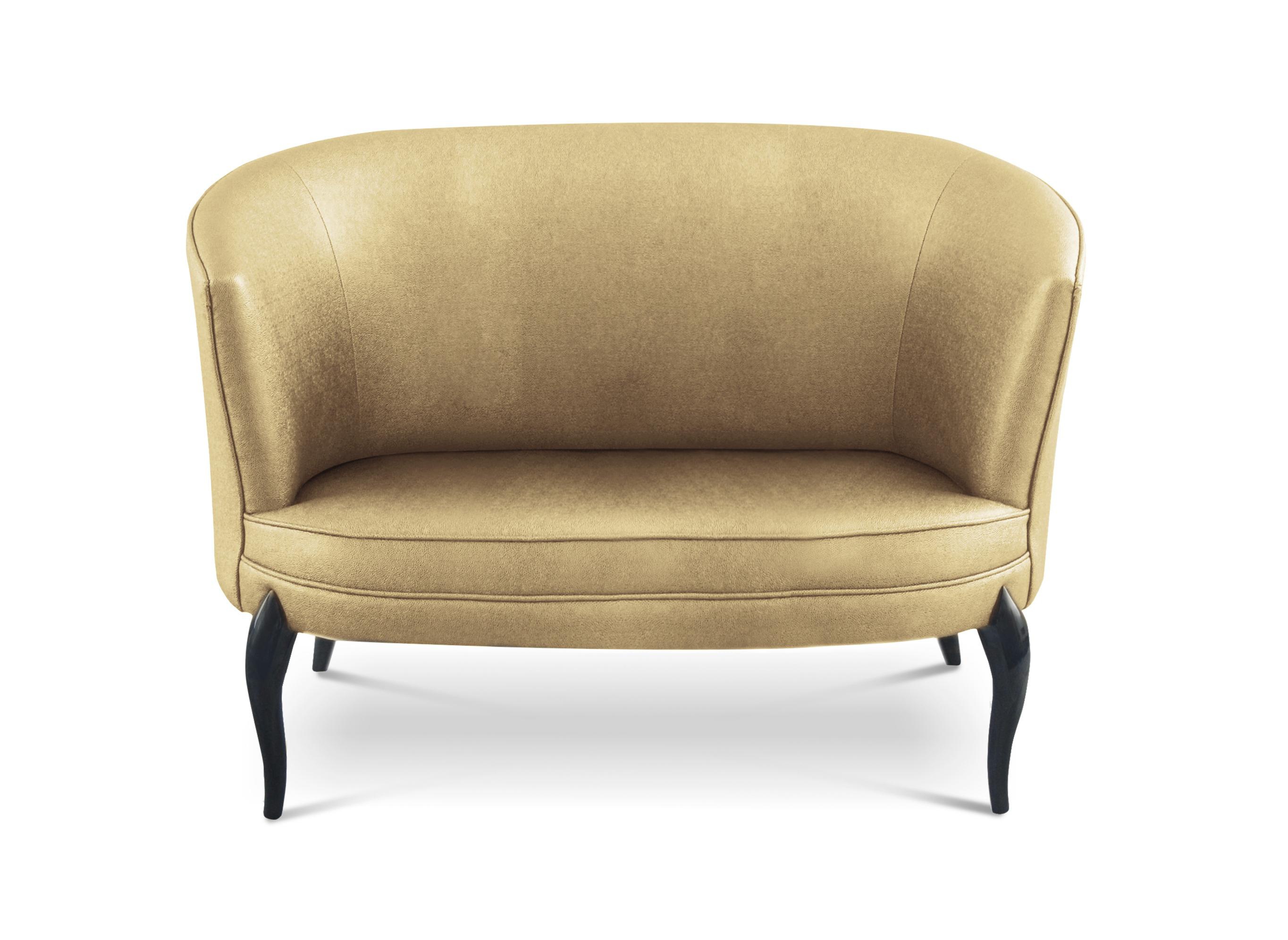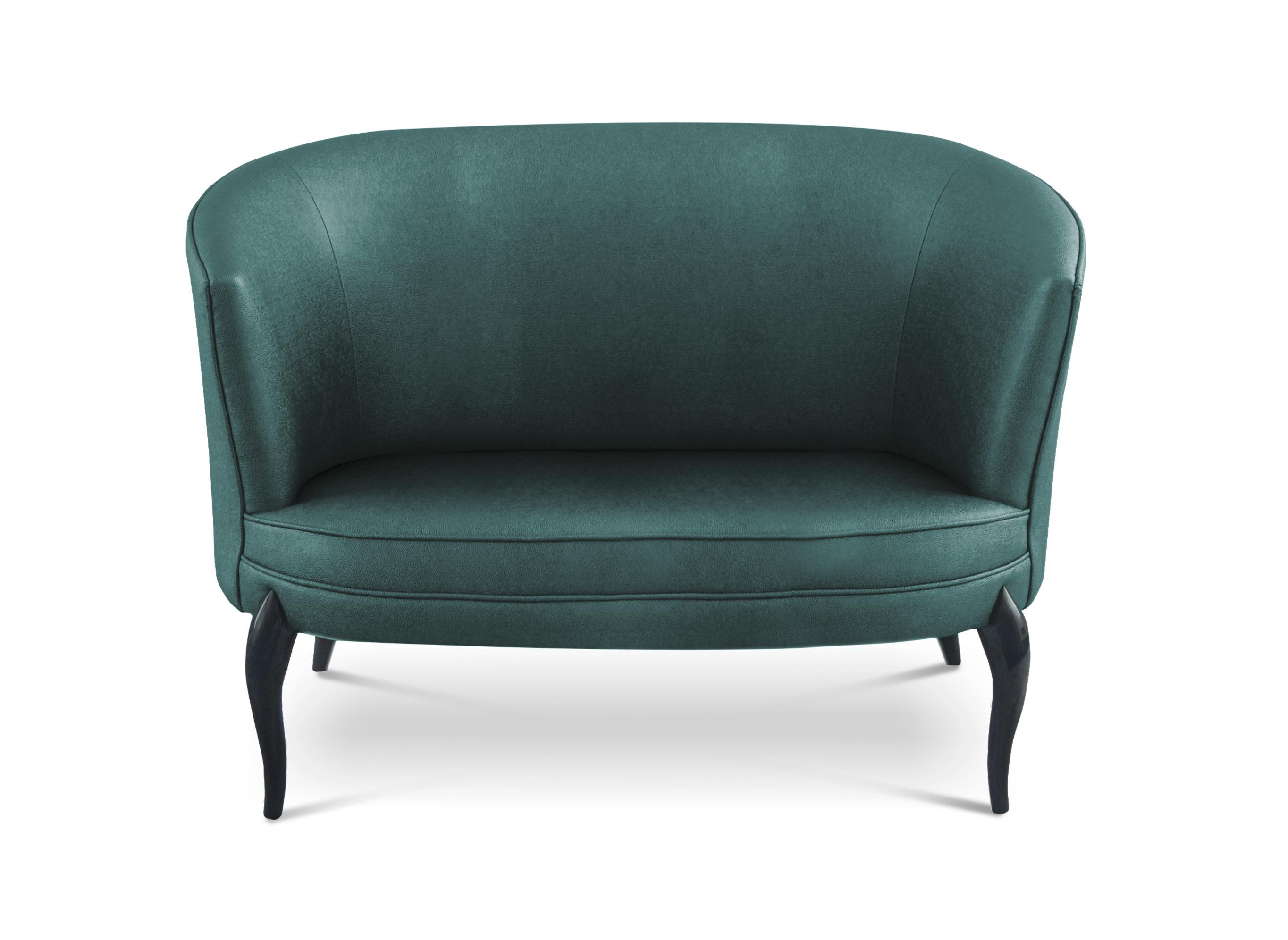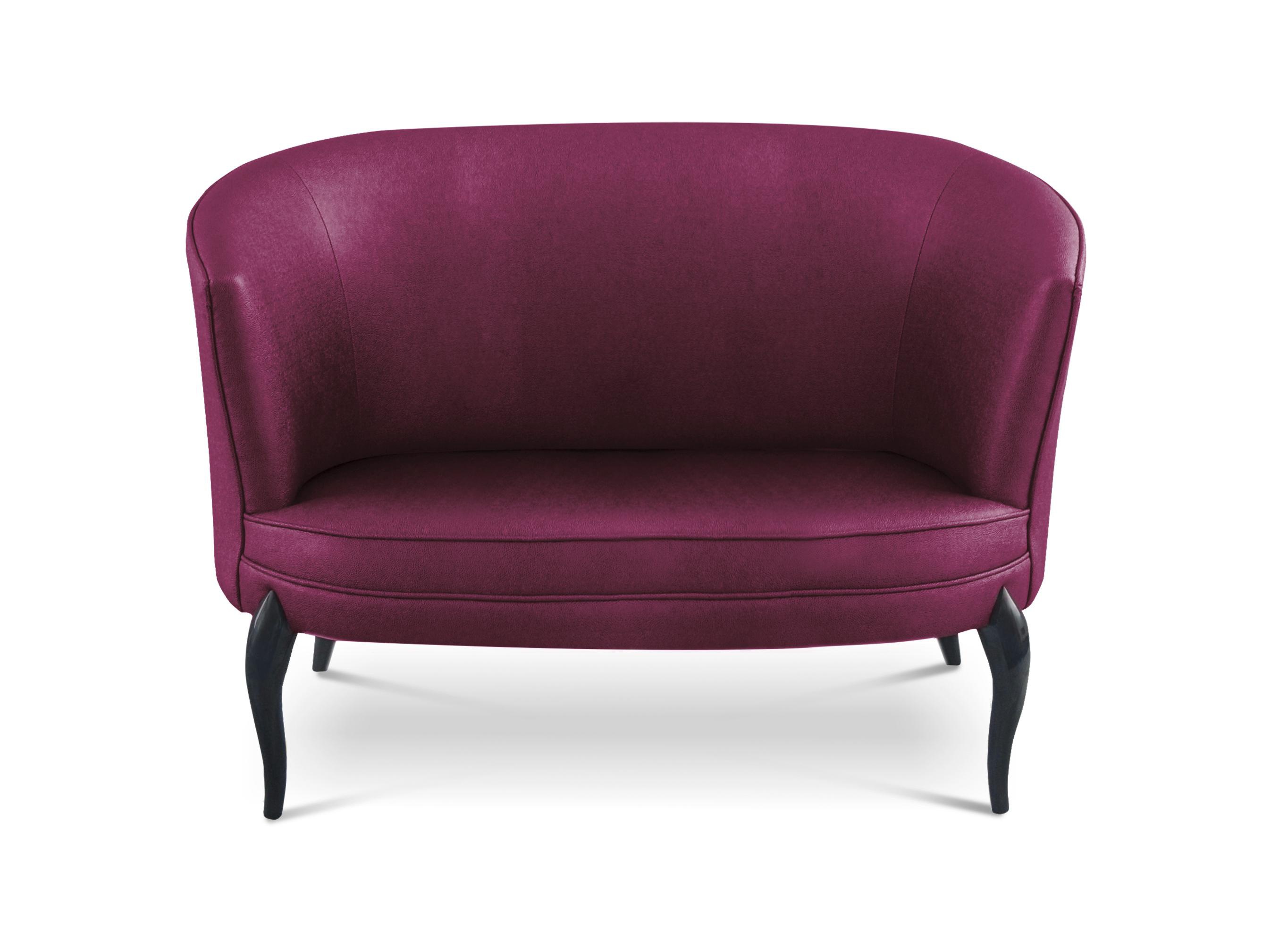 Double sofa Delice from Portuguese manufacturer Koket. Model on black lacquered legs with velvet upholstery. Sofa Delice is a delicacy, a gourmet dream! Options upholstery colors and legs to choose in the catalog factory.