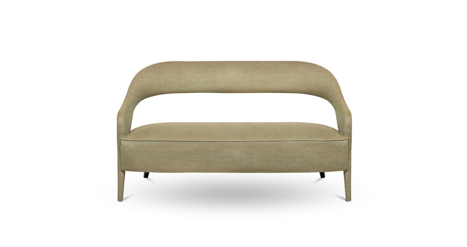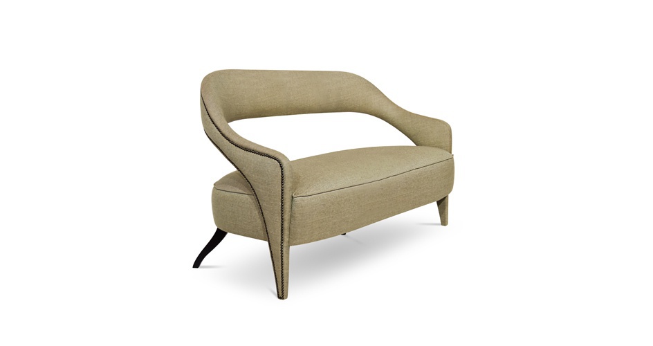 TELLUS double sofa from Brabbu Portuguese manufacturer. The frame is made of wood, completely hidden. Legs made from solid wood. Upholstery textile. The color and texture of your choice from the collection of the company. Filler - polyurethane foam. Decorations are the bronze furniture of cloves around the perimeter. The design is inspired by the earth goddess TELLUS - Roman mythology, bears the divine aura, which will be distributed throughout the space. The model is a perfect combination of light color with wooden legs. Place it in a modern interior.