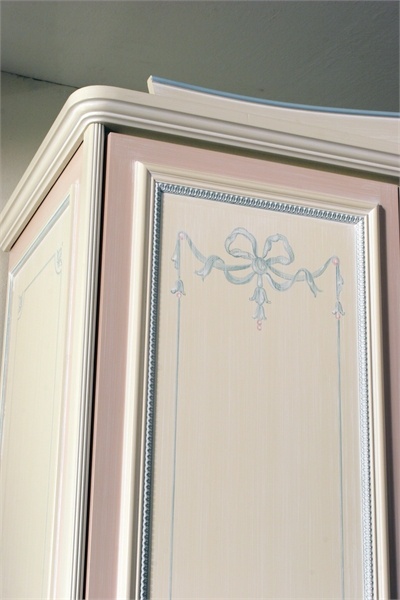 Wardrobe Vera Armadio from the Italian manufacturer Pellegattta. A handcrafted Cabinet. Made in the shape of the letter "P" in the center is a built-in niche for the bed or sofa can be a bunk with additional pull-out bed. The facades of the wing have drawers, open shelf for books. The number of sections and the arrangement at the request of the client: size of the section is a multiple of 50 and 100 cm from the Frame tamburino plates with cellular filling on the basis of solid spruce, the basement and the facade is an array of ramino. Narrow sash decorated with carved edging. Finishing is performed manually coloring in any colors from the range or by a given sample. The d?cor of paintings made in the technique of miniature used tempera, 6-8 colors, drawing from the catalog of the factory or on the customer's sketch. The surface is covered with a substance, which protects it from scratches and damages. It is proposed to combine the model with a bed, bedside table, Desk and chair the same collection.