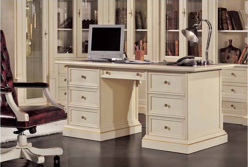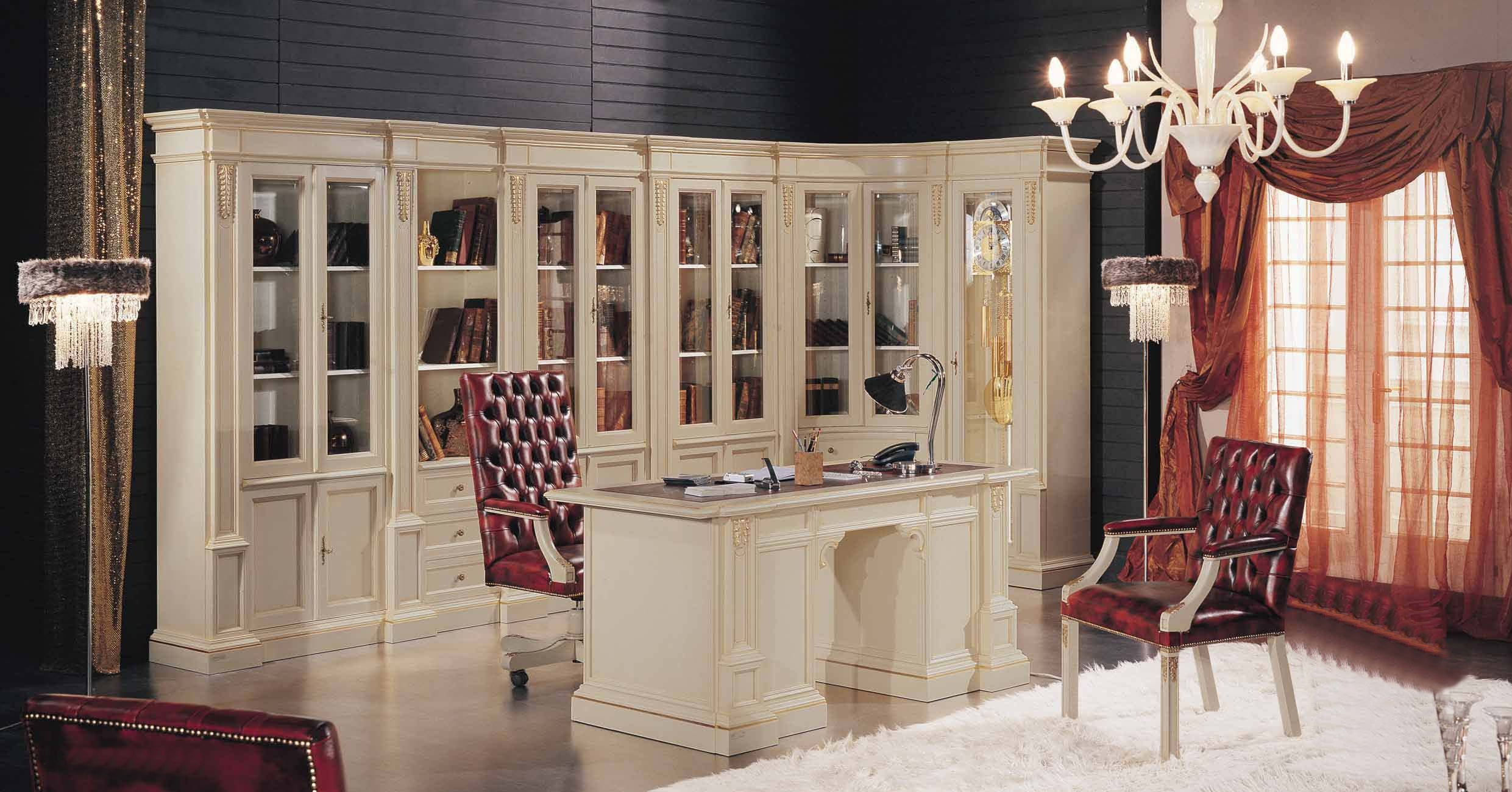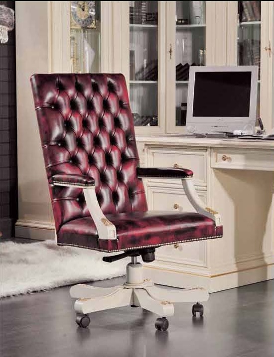 The office (Suite office) from the Italian manufacturer Mirandola Export. Set includes: bookcase modular corner Cabinet, Desk with a leather cover, swivel chair on wheels and chairs with armrests. Desks can be two options: with drawers or space for your computer. Frame products made of wood, upholstery leather. Set Mirandola Export will give you confidence and will create a favorable atmosphere in Your office.