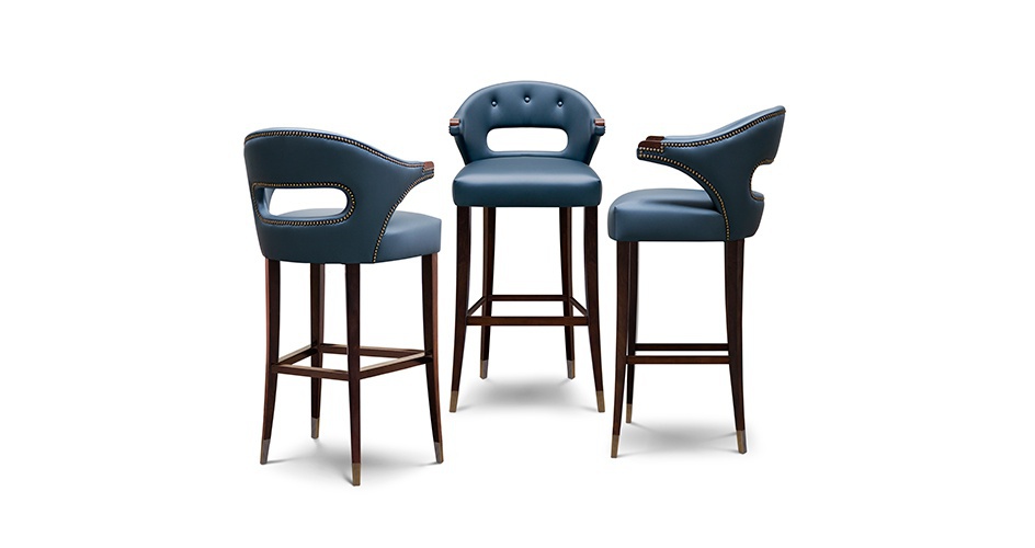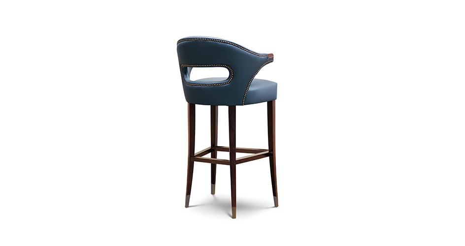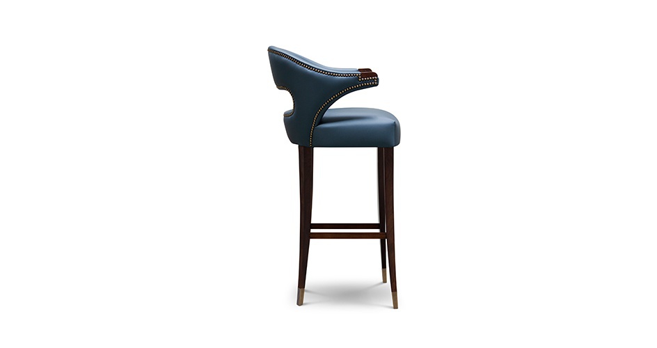 Bar chair NANOOK from the Portuguese manufacturer Brabbu. The frame is made of wood. Legs made of oak or walnut with brass inserts. Upholstery leather with a filler of polyurethane foam. Decorated with furniture nails. The model represents the owner of the Arctic regions a bear. What decides the fortune hunters. Combines the beauty and grandeur of the animal's body. Embodies the culture of the Inuit people and tells their stories and myths.