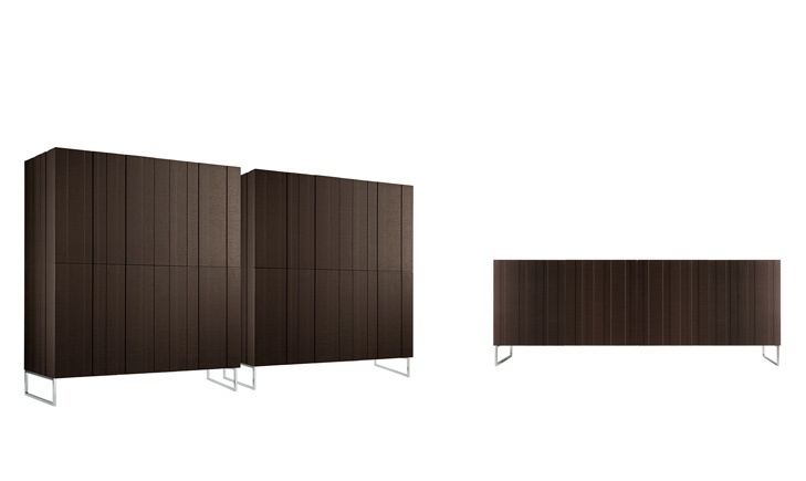Dresser wood dark oak with metal chrome base, model with hinged doors drawers.