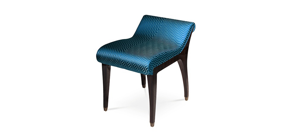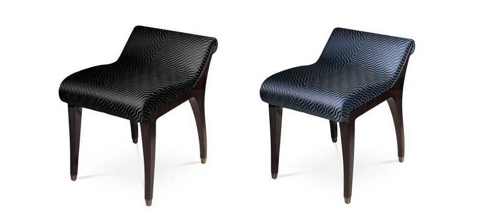 Stool Incanto from Portuguese manufacturer Koket. Model-lacquered legs with upholstered Koket. This is an example of the seductive combination of simplicity and luxury (corrugated fabric Chartreuse and black wood legs). Upholstery color and varnish can be enjoyed on the catalog of the manufacturer.