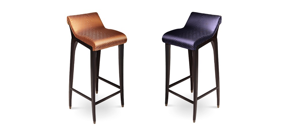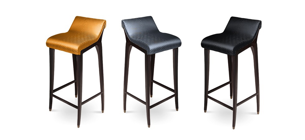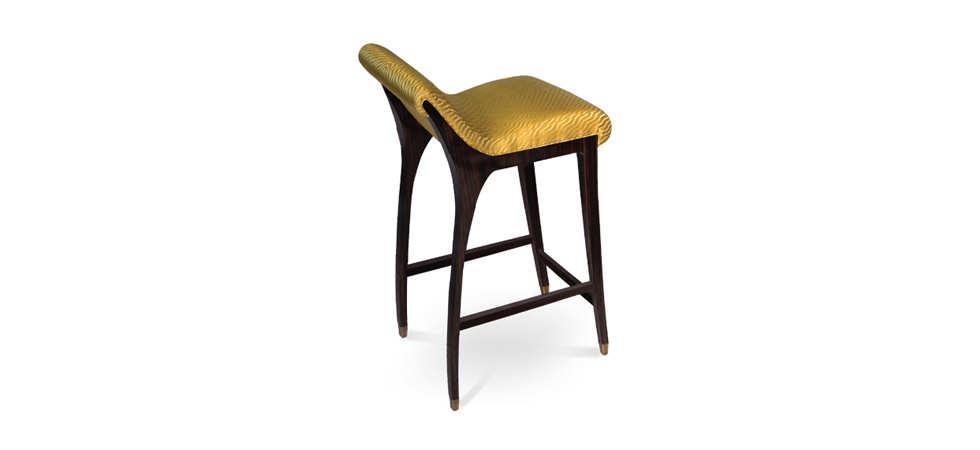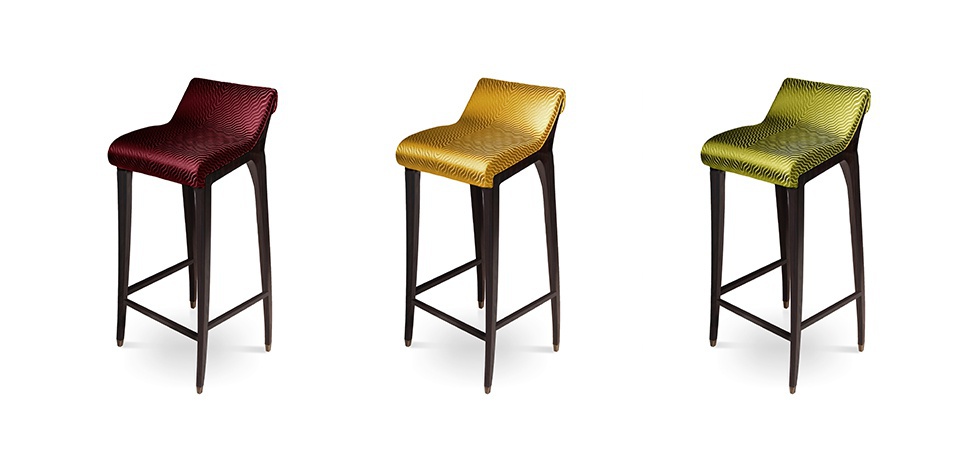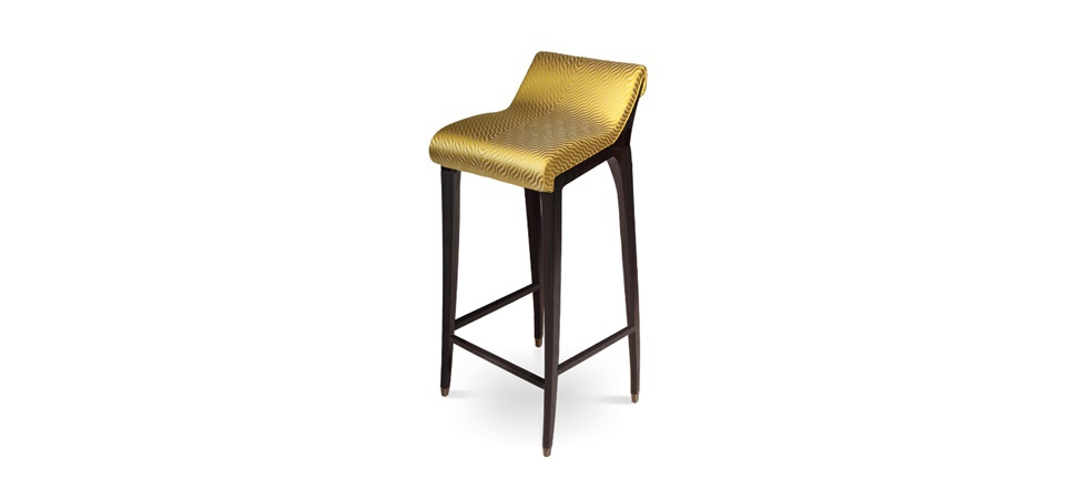 Incanto bar stool from Portuguese manufacturer Koket. Model on legs with painted upholstery - the example of the seductive combination of simplicity and luxury (corrugated fabric Chartreuse and black wood legs). Upholstery color and varnish can be enjoyed on the catalog of the manufacturer.