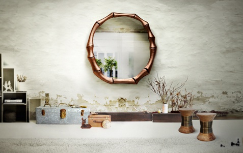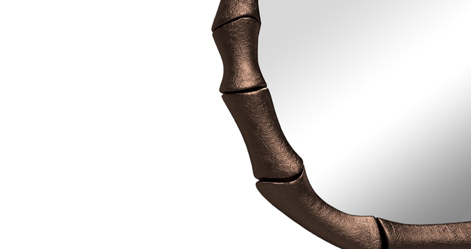 Round mirror HAIKU from the Portuguese manufacturer Brabbu. The model in the frame of forged brass or copper. Modern style in the form of a ring of copper or brass depicting bamboo. Is the perfect addition to home decor, bringing with them the integrity, elegance and simplicity. You will see in the mirror a reflection of the best of your life. As bamboo in traditional Chinese culture presents many qualities such as uprightness and tenacity. Although the bamboo is not strong, it is growing fast in the woods in Haiku Maui - Hawaii, being an important source for food and building materials for many centuries.