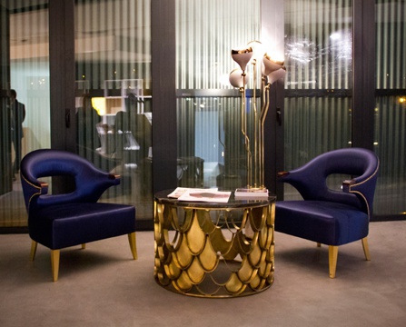 Round coffee table KOI from Portuguese manufacturer Brabbu. The base is made of metal brass. The tabletop is made of glass or marble. Carp is a constant symbol of Japanese culture. The Shine of the sun reflected on the surface of the base of brass. The image is often used for decorative purposes, not only in water gardens. Its natural color has the ability to adapt. KOI is the Japanese word for love or affection, making the carp a symbol of love and friendship.