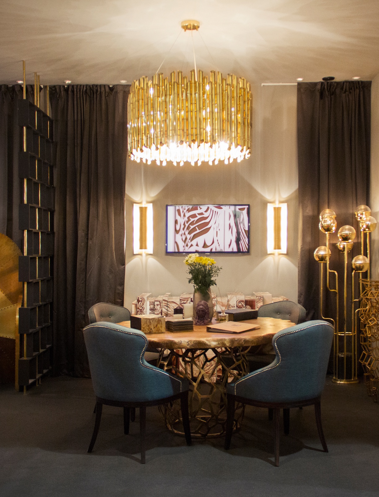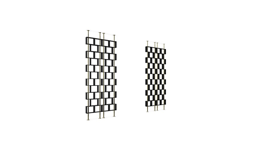 Screen wall to HANOI from Portuguese manufacturer Brabbu. The modern model with a frame made of brass. Cubic forms have long been incorporated in architecture since ancient times. Now the buildings with this geometrical shape can be seen in cosmopolitan cities such as Hong Kong, Singapore and Dubai. This form gives the cities a modern look. And also you can use in interiors . This can be achieved using a screen wall to Hanoi from matte brass and matte black lacquer. The model is inspired by the Vietnamese city, where was built Museum of the cubic form, to tell stories about the city and its people.