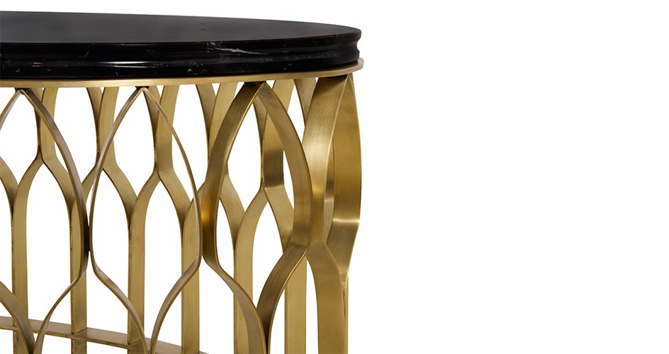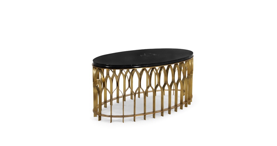 Oval coffee table from MECCA Portuguese manufacturer Brabbu. The model on the basis of forged brass as a reminder of the pillars of the mosque. On the base - the base is green marble top, keeping all the structure balanced and United. Mosques are majestic architectural works, places for pilgrimage and spiritual cult. Inspired by this table fill your home rituals of living, resting and receiving your guests.