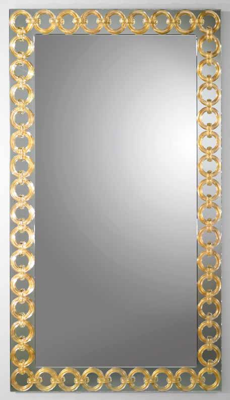 The Casanova wall mirror from the Italian manufacturer Reflex Angelo. Collection of mirrors of various shapes, sizes and different finishes adorn glamorous interior and will visually increase the space of the living room, dining room or hall. The mirror is made of transparent plate glass with beveled edge. Frame of transparent glass is decorated by hand ornaments in the form of rings, or patterns of transparent, colored Golden, or Murano glass. Optional - built-in lighting system. Colours in stock.