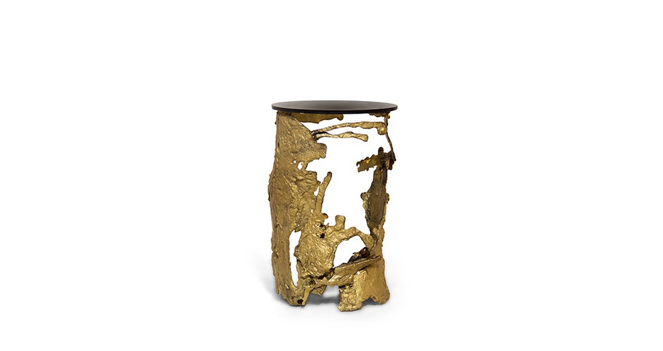 CAY pridivannogo table from Brabbu Portuguese manufacturer. Made of brass with a top made of glass. Nature in its unfinished form flows through this charismatic furniture piece as lava flows during a volcanic eruption. Frame from cast brass and bronze glass embodies the ultimate cry of nature. Allow yourself to hear the ultimate call, feeling its strength and is reflected in urban life.