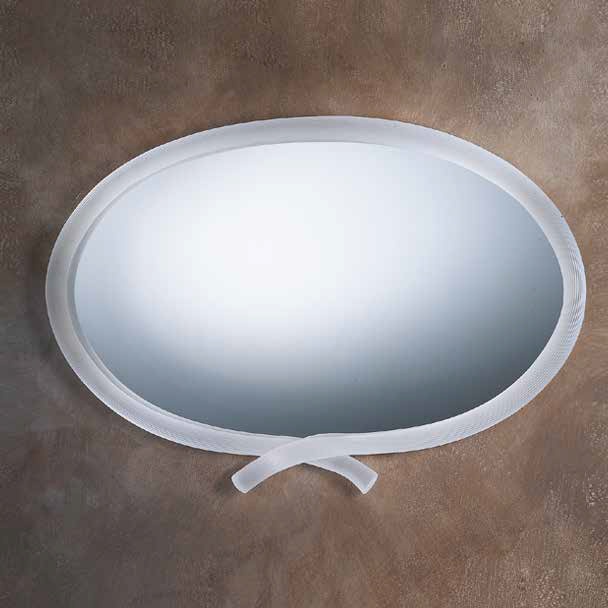 Fiocco wall mirror from the Italian manufacturer Reflex Angelo. Beautiful large mirror adorn glamorous interior and will visually increase the space of the living room or dining room. The shape of the oval mirror available in two sizes, a horizontal or vertical position. Made of clear mirror glass. Ribbed frame transparent Murano glass available in white, blue, green, or blue colors in the finishing or "dew". Available models in Matt black or white frame.