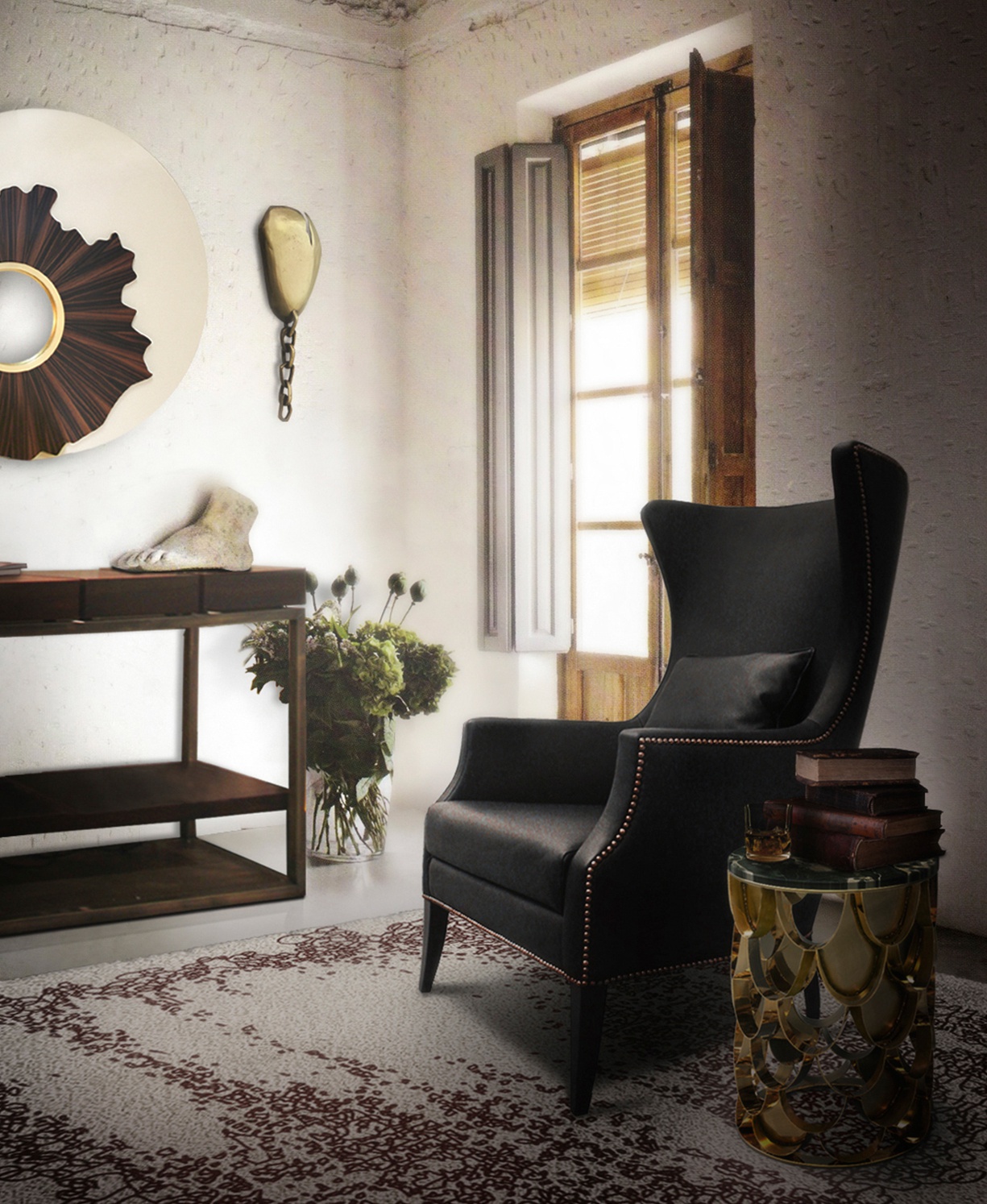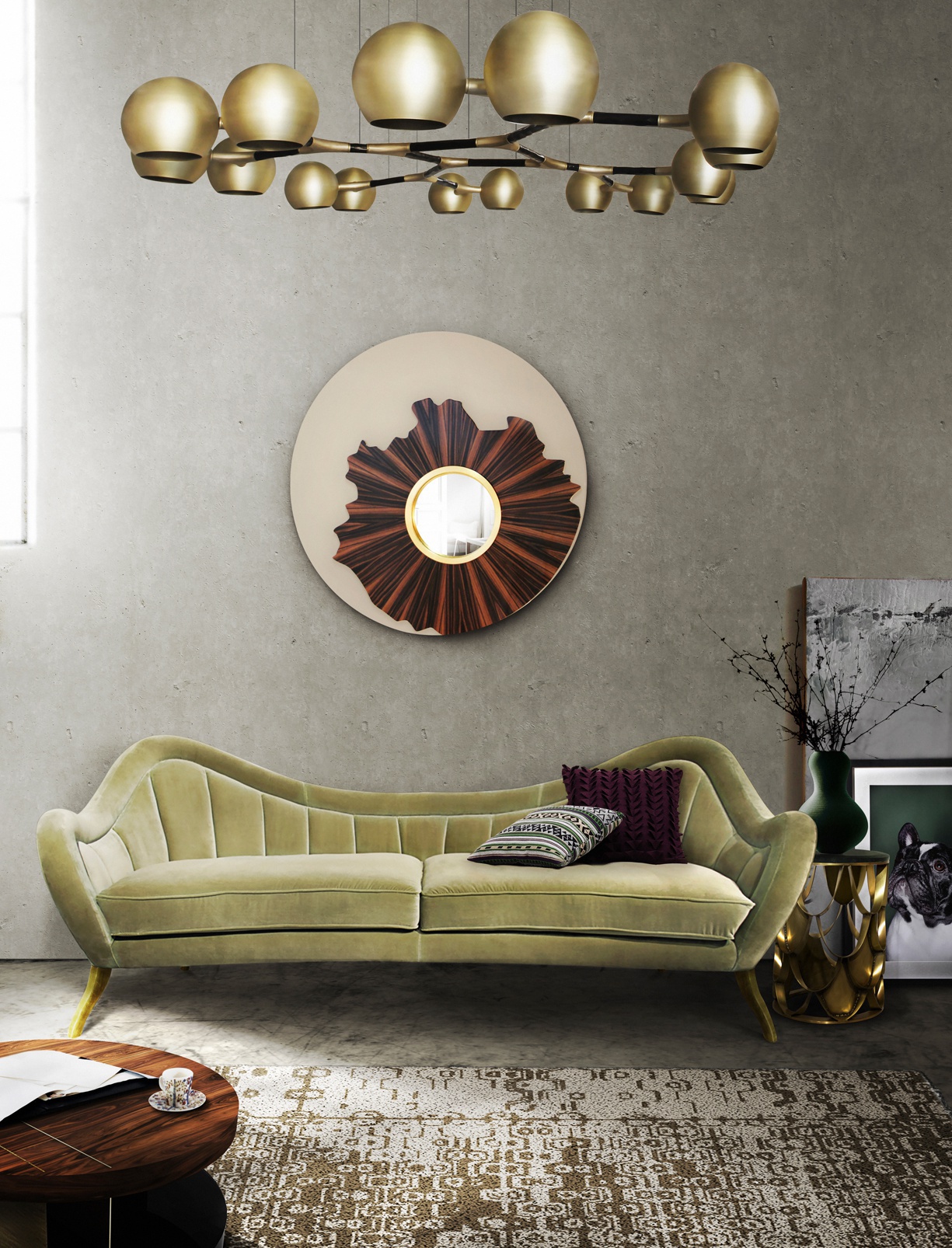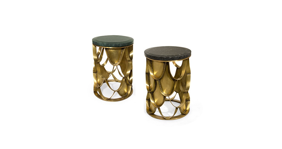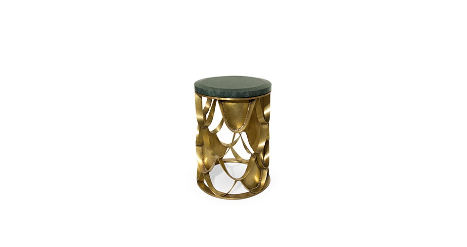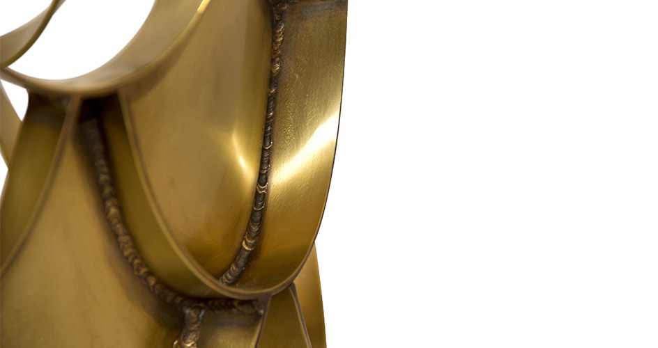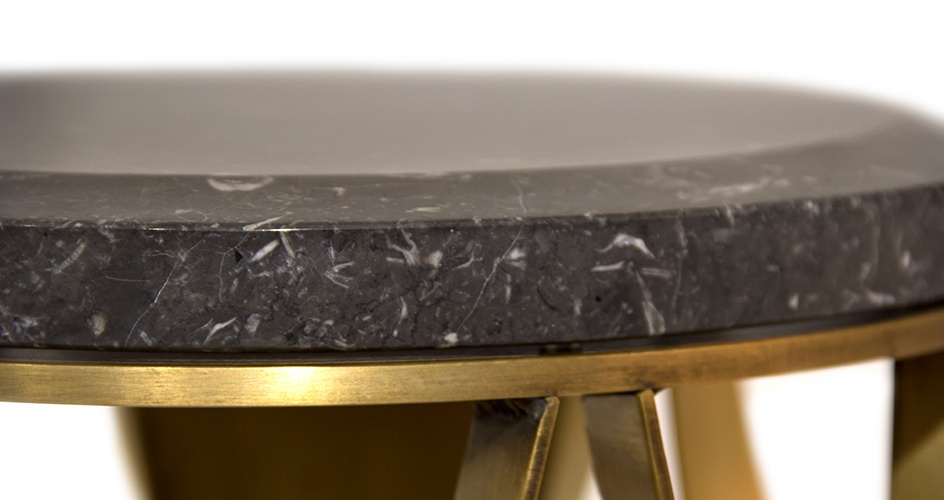 Round KOI pridivanny table from Brabbu Portuguese manufacturer. The base is made of brass. The tabletop is made of glass or marble. The Shine of the sun reflected on the surface of the base made of brass and shimmers. The carp is a permanent symbol of Japanese culture. The image is often used for decorative purposes, not only in water gardens. KOI is the Japanese word for love or affection, making the carp a symbol of love and friendship. Its natural color has the ability to adapt to any interior.