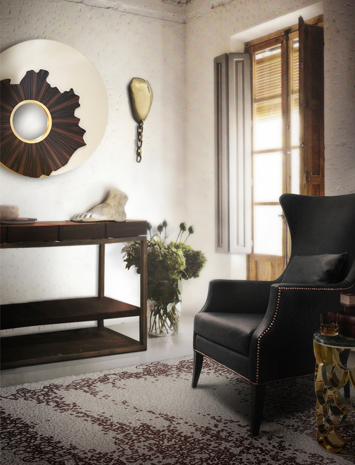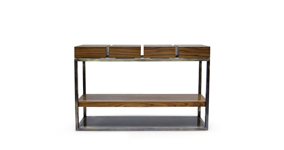 Rack CASSIS from Portuguese manufacturer Brabbu. Consists of a tree of rosewood and brushed antique brass. Model with open shelves and four drawers. Brings tales from ancient times from unknown natural places, in a mixture of feelings with modern home decor. Come closer and let yourself be amazed by this perfect balance between elegance and power. The model is inspired by the warm tropical atmosphere and is the touch of nature. Strives to ensure the comfort of the modern interior.